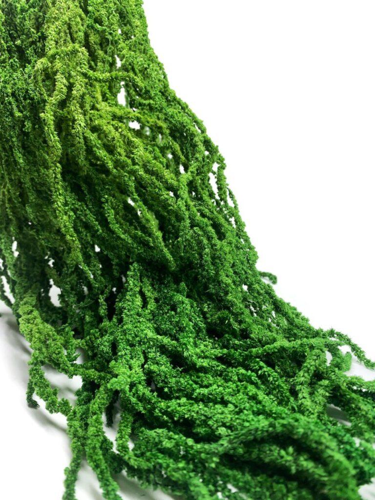 Амарант стабілізований — унікальний елемент для створення стильних інтер’єрних композицій. Завдяки процесу стабілізації він зберігає свою природну форму та насичений зелений колір тривалий час. Гілки довжиною 75-100 см ідеально підходять для декору приміщень або флористичних проєктів. Пучок містить 5-7 гілок, що робить його ідеальним вибором для букетів або дизайнерських композицій.