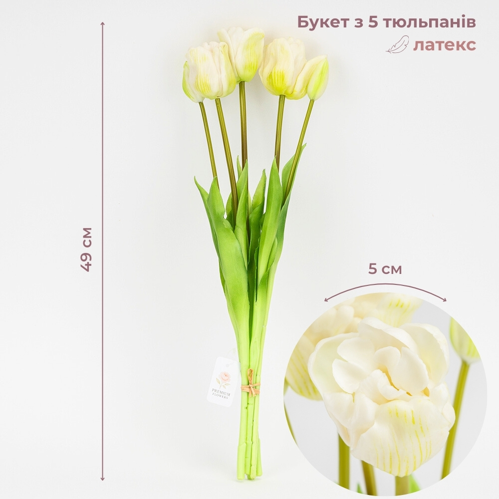Букет латексних тюльпанів 5 бутонів 49 см Біло-зелений (2026-005/white)