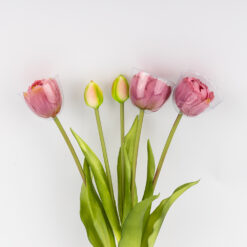 Букет з 5 тюльпанів. Висота букету – 39 см, діаметр бутону – 4 см. Виготовлений з латексу. Букет тюльпанів з латексу – витончена композиція, що вражає своєю неповторною красою та реалістичністю, відтворюючи живі квіти з великою деталізацією. Такий букет є ідеальним варіантом для створення декоративних композицій, декорування святкових заходів, фотостудій, вітрин магазинів, кафе тощо! Букет залишиться свіжим та привабливим протягом тривалого часу без надмірного догляду.