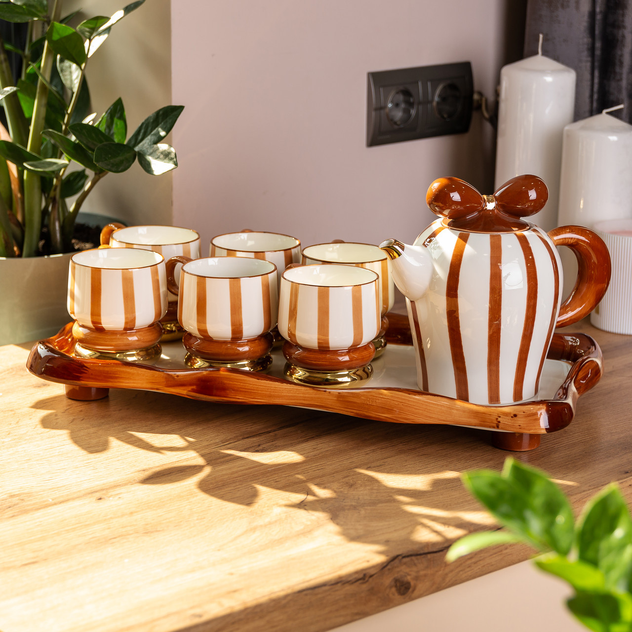 Чайний набір на 6 персон із порцелянаовою підставкою, шоколад HP-15-29