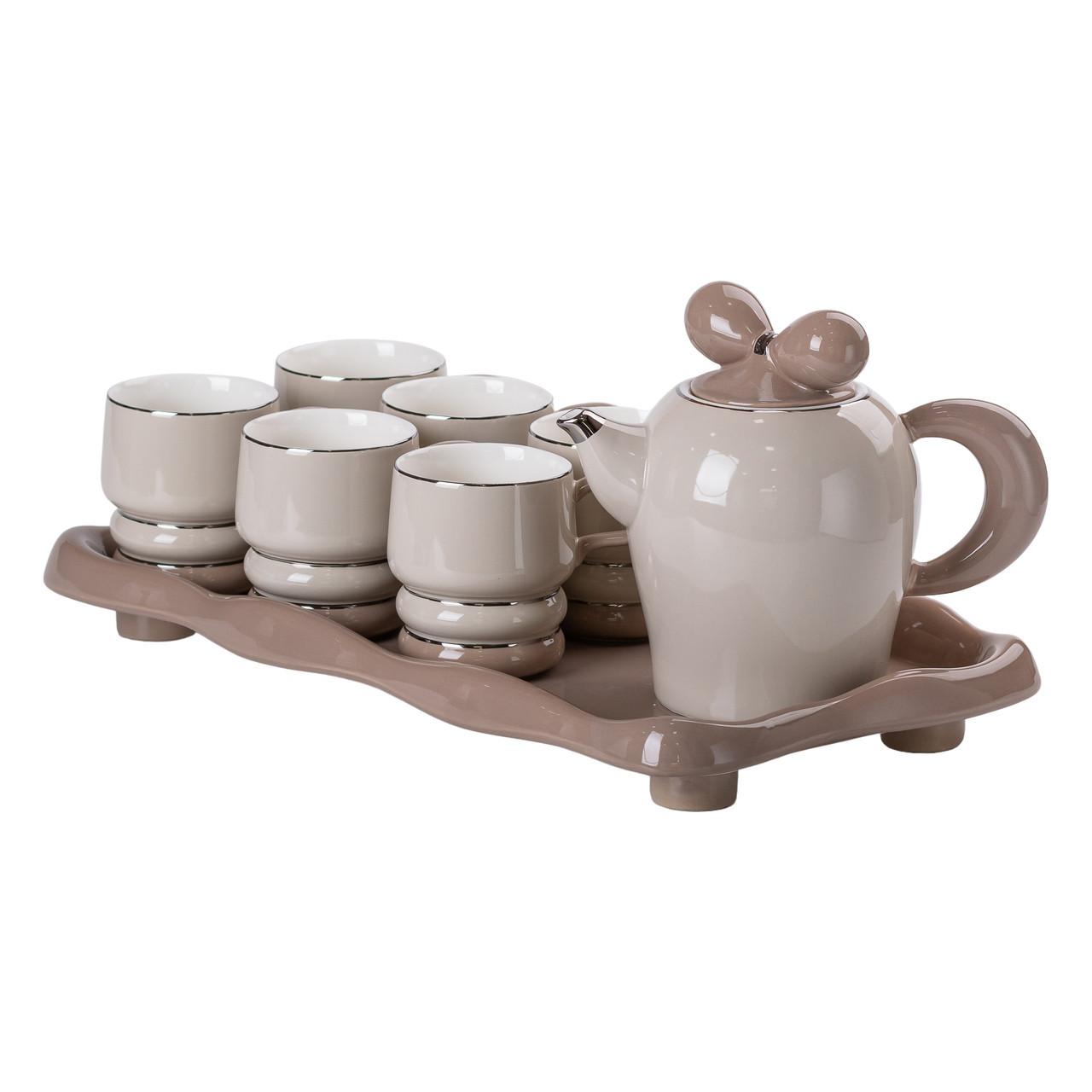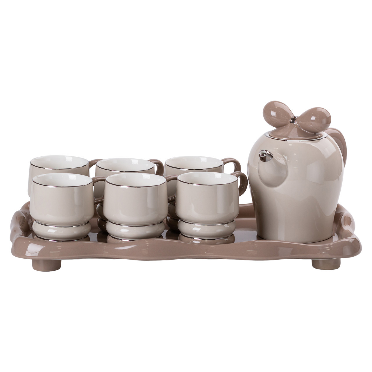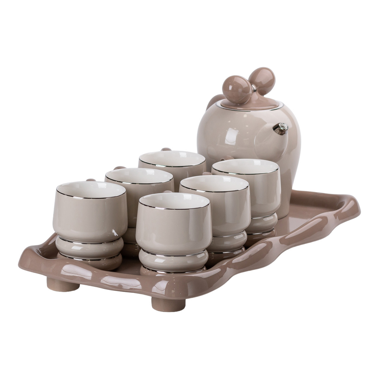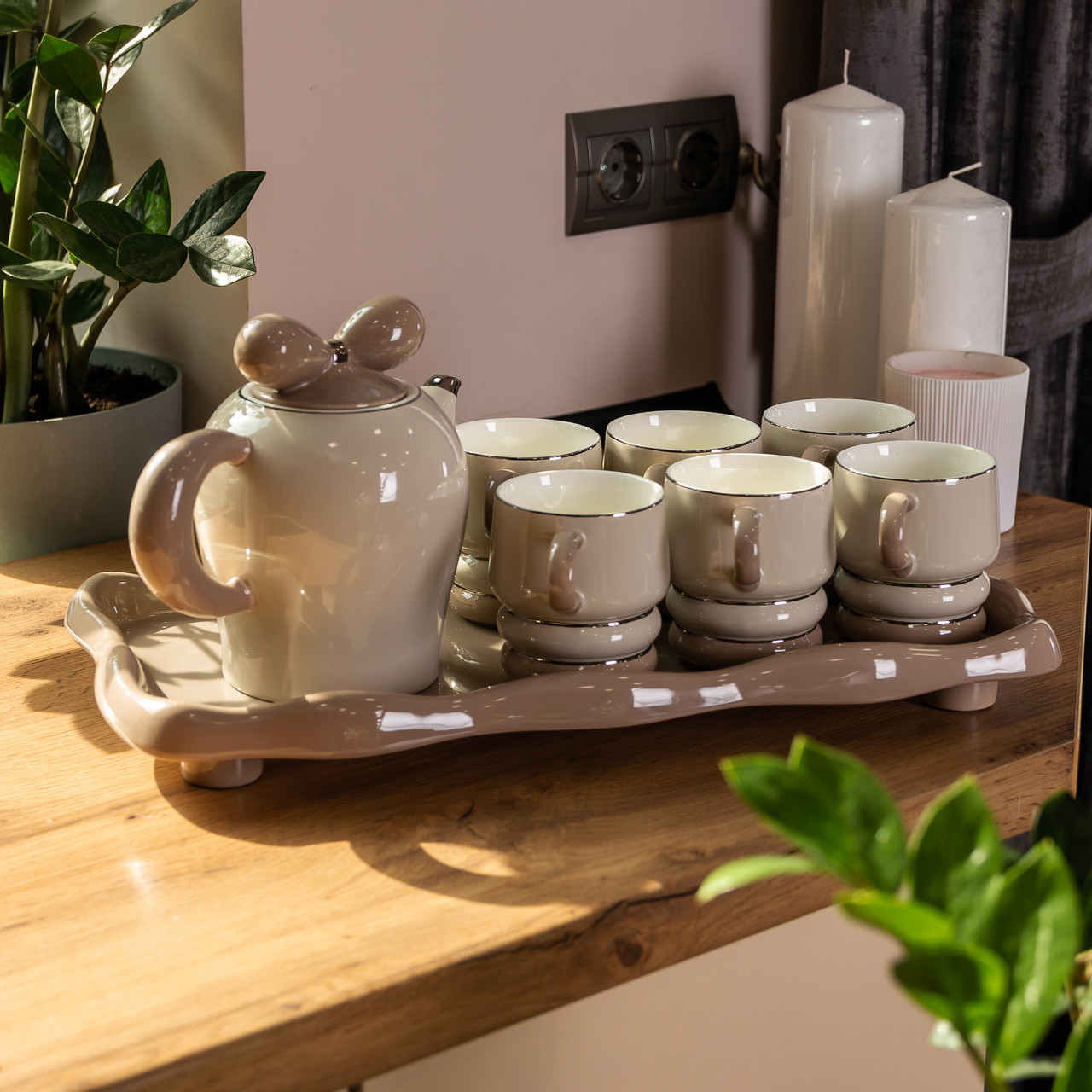 Чайний набір на 6 персон із порцелянаовою підставкою, сірий HP-15-28