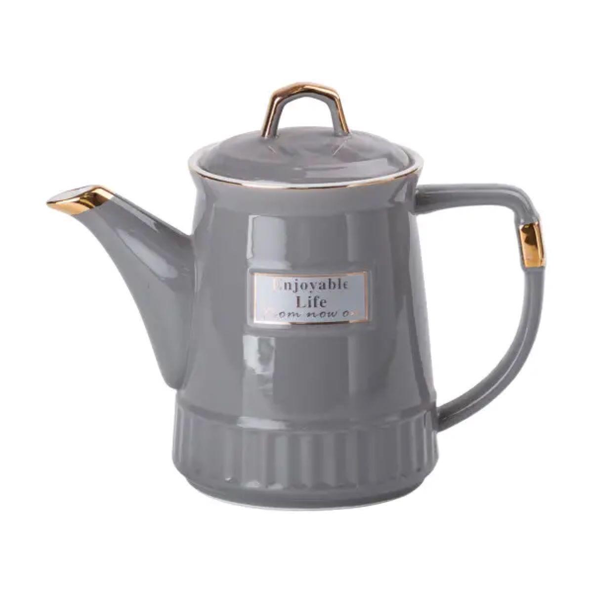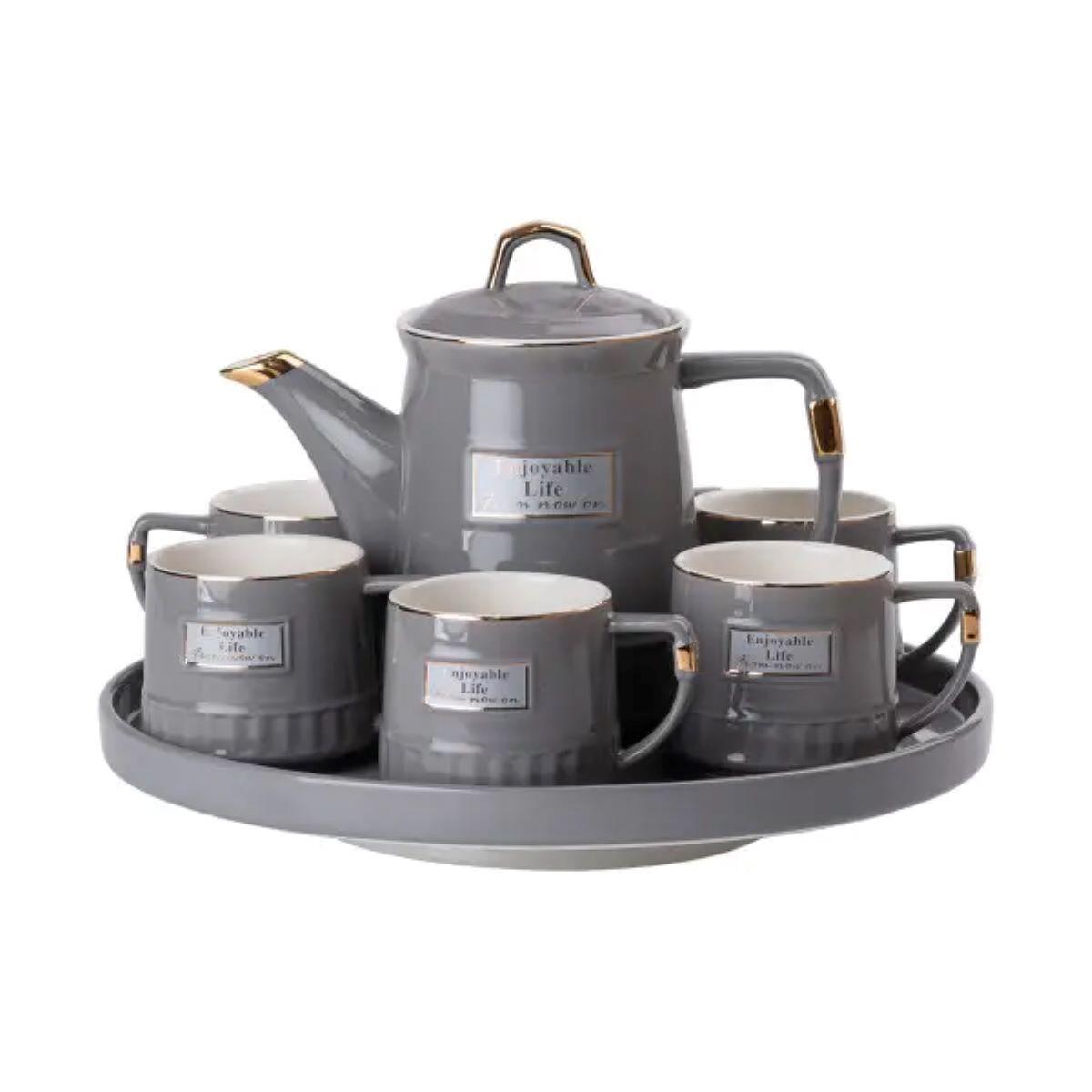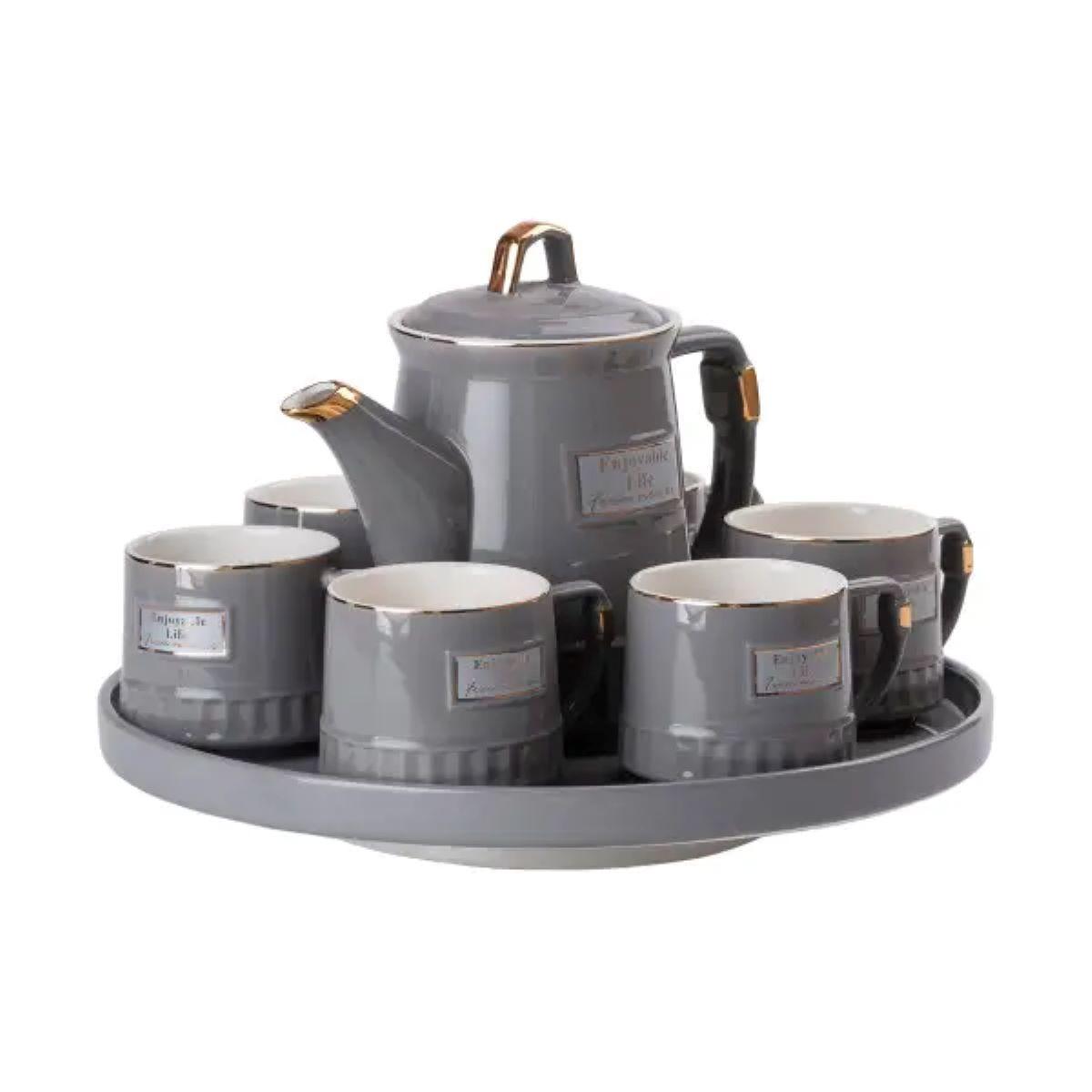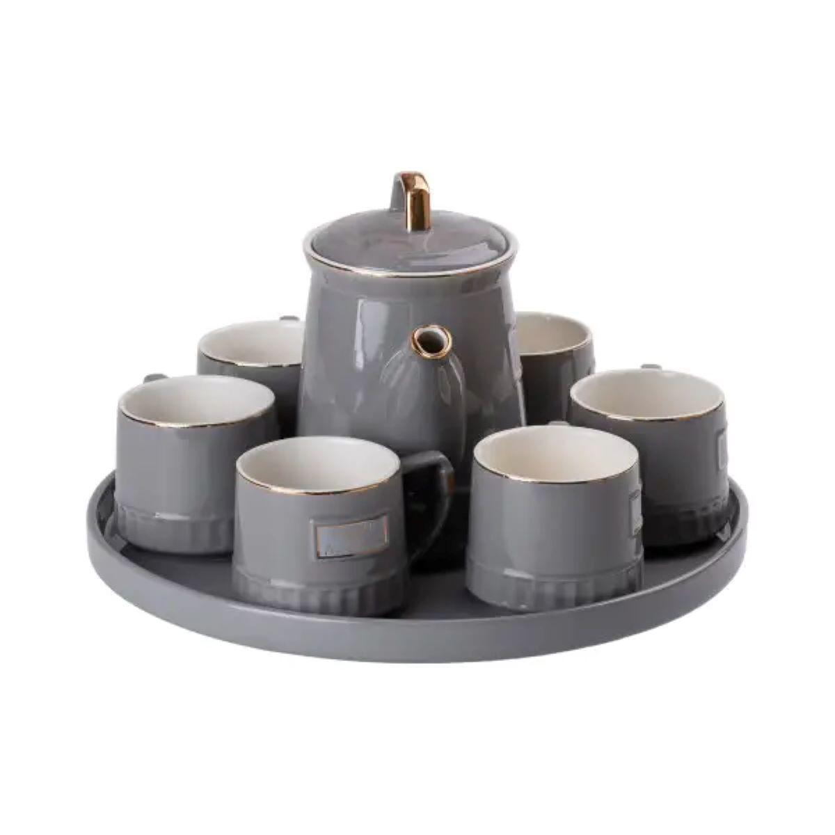 Чайний набір на 6 персон (з заварювальним чайником та порцелянаовою підставкою), сірий HP-15-5