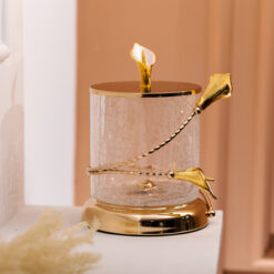 Цукерниця скляна 14×20 см з квітковим металевим декором цукерниця з кришкою HP-7-7