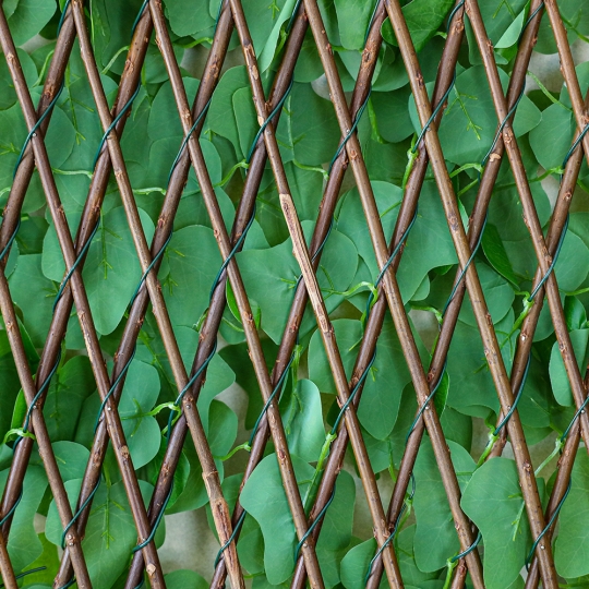 Декоративна панель “Плющ” виготовлена з лози та штучного листя на текстильній основі з силіконовим покриттям. М’яка й гнучка конструкція дозволяє зручно розтягувати фітомодуль по горизонталі або вертикалі. Ідеально підходить для оздоблення стін, перегородок, вітрин, фотозон і терас. Виріб легко монтується, не потребує догляду та створює природний зелений акцент у приміщенні або на вулиці. Стильно, практично та функціонально.