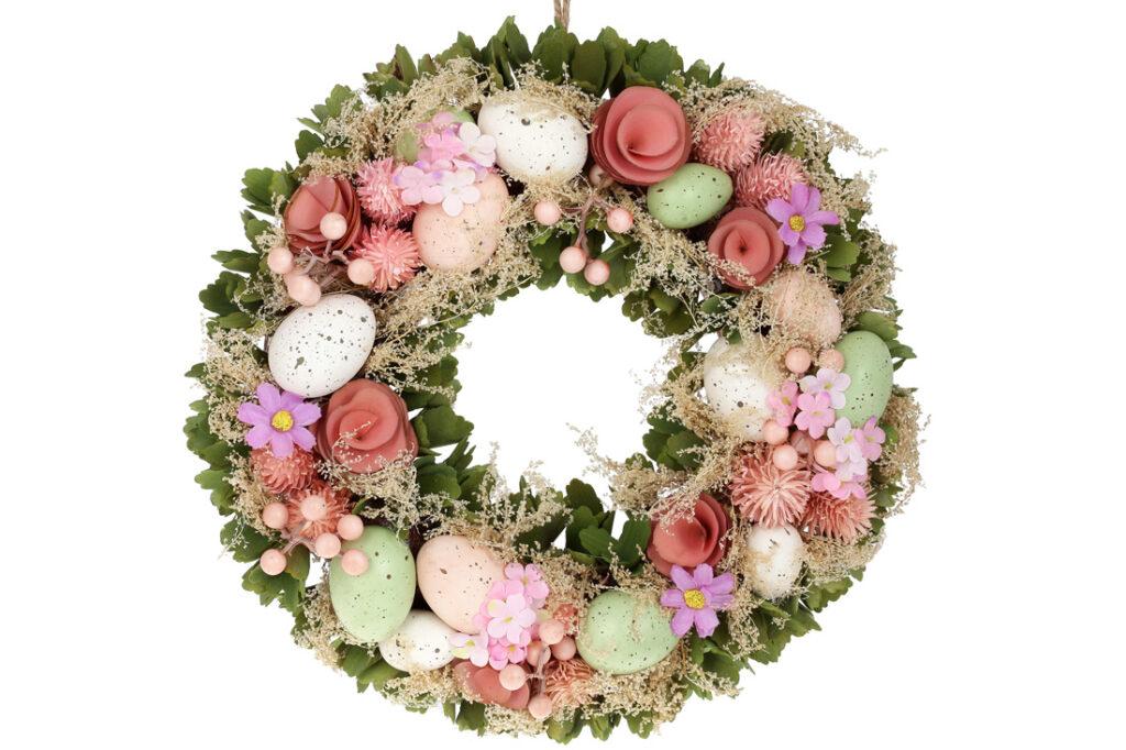 Декоративний великодній вінок, 36 см, колір – рожевий (743-904)