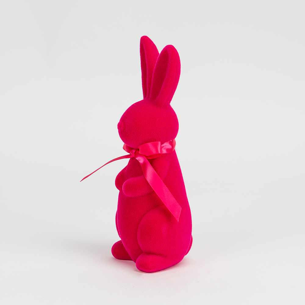 Фігурка флокова Великодній зайчик, темно-рожева, 23 см