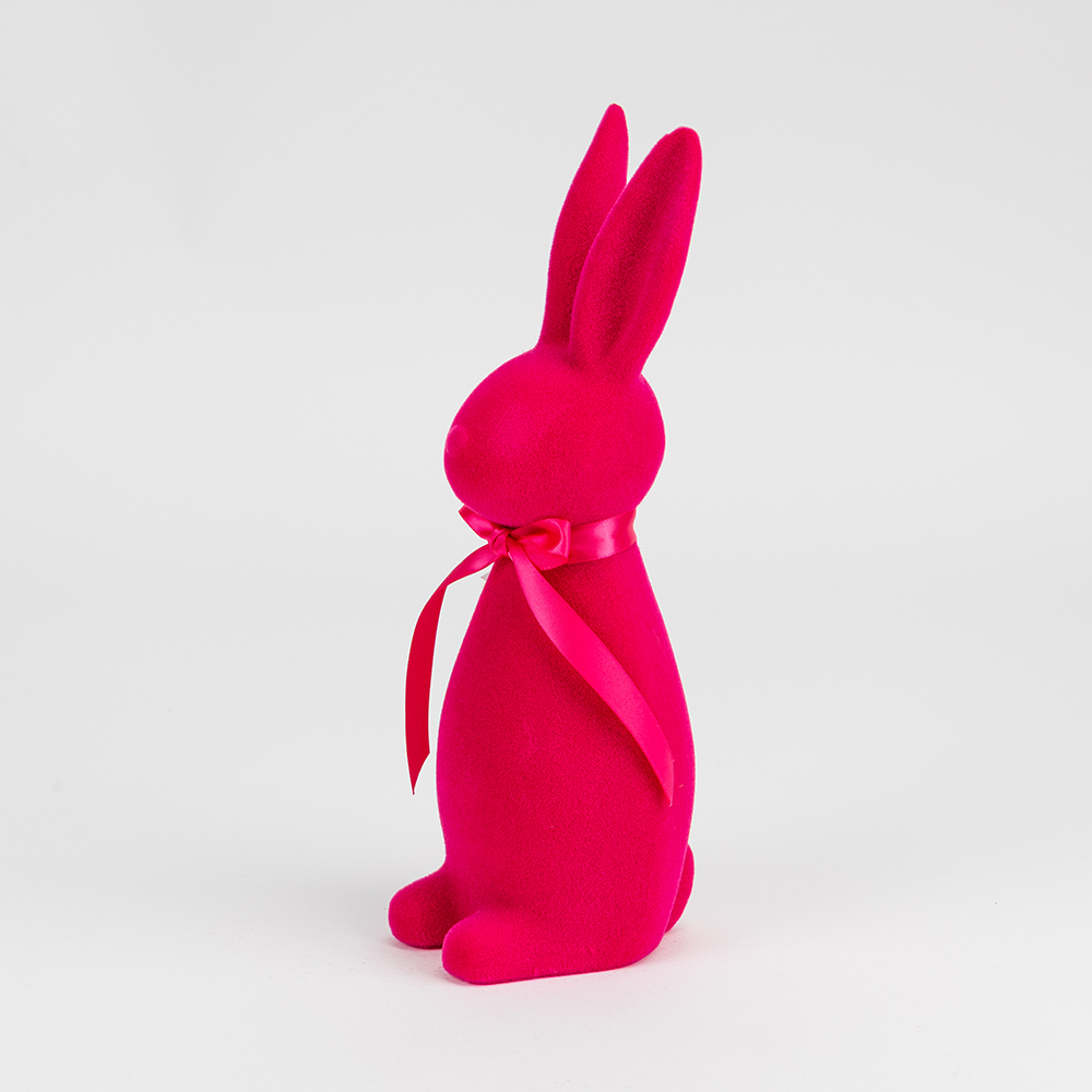 Фігурка флокова Великодній зайчик, темно-рожева, 30 см