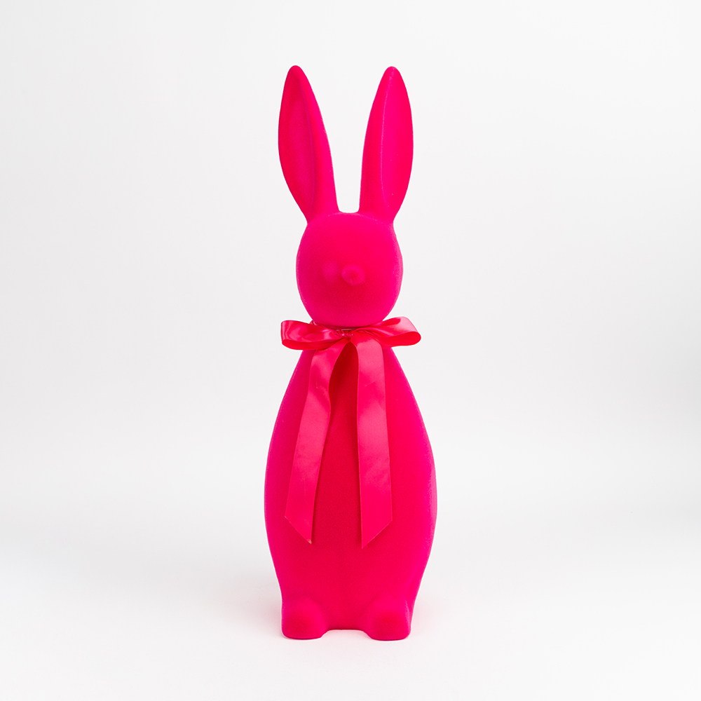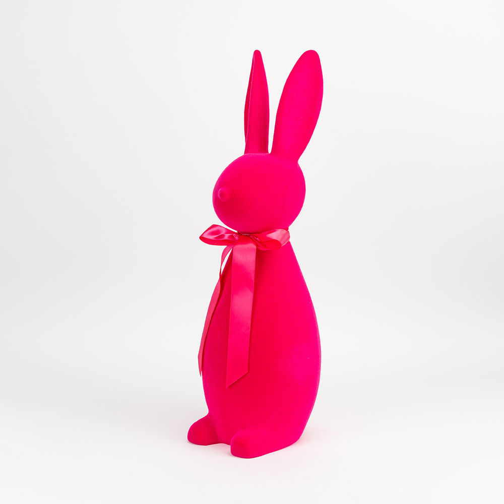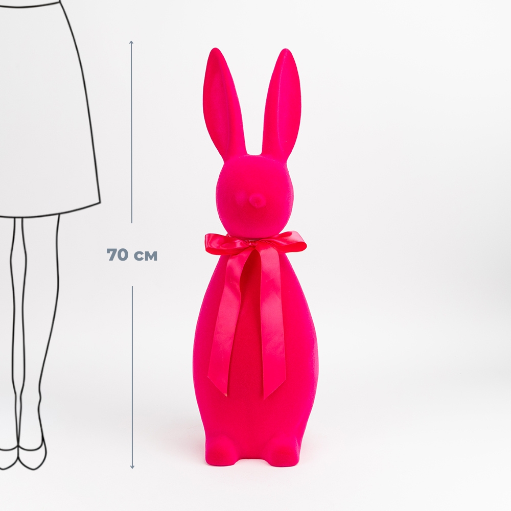 Фігурка флокова Великодній зайчик, темно-рожева, 70 см