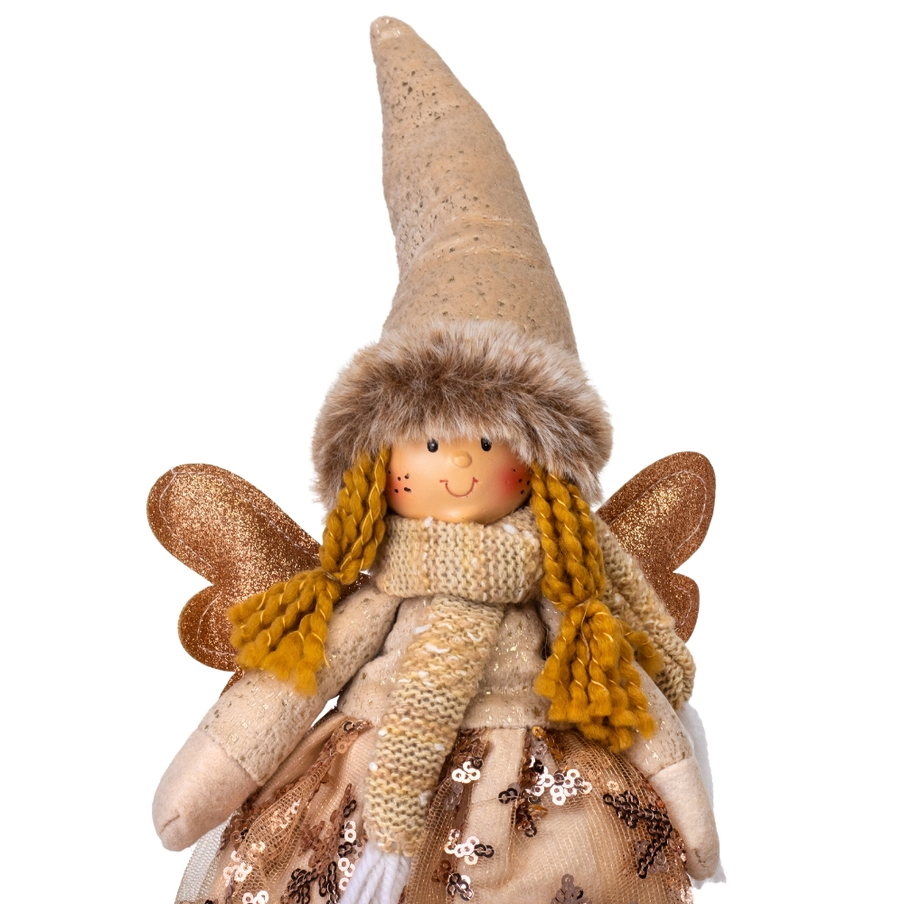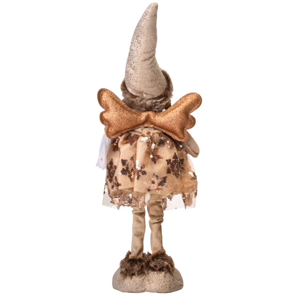 Висота – 42 см, довжина – 13 см, об’єм – 11 см. М’яка текстильна новорічна іграшка – це чарівний декор для святкового інтер’єру, виготовлений з м’яких і приємних на дотик матеріалів. Ніжні кольори та деталі додають їй особливого шарму та святкового настрою. Іграшка ідеально підходить для прикрашання ялинки, каміна, або використання в якості подарунка, що принесе радість та затишок у кожен дім. Фігурка стійко стоїть.