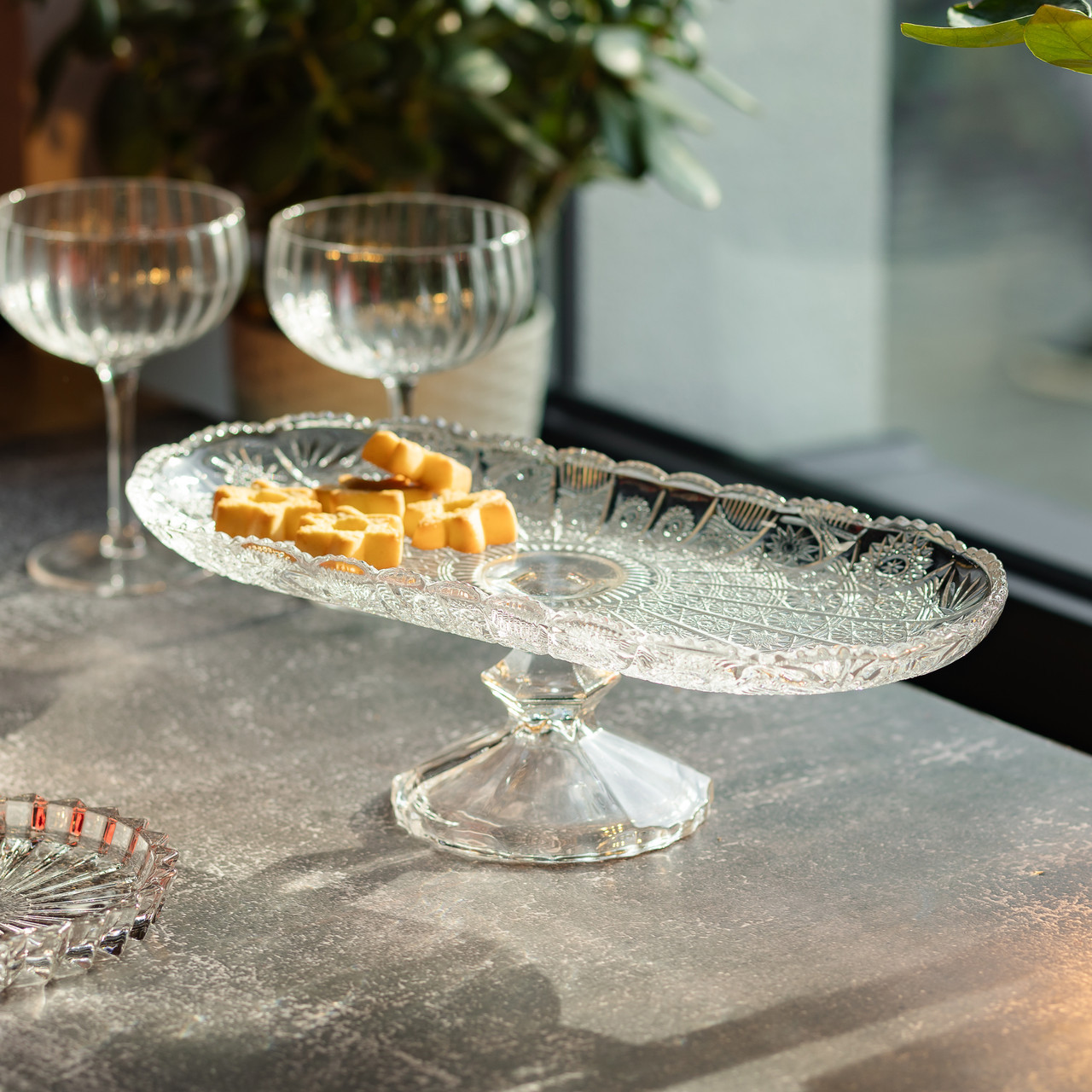 Фруктовниця скляна на ніжці 33.5х15х10 см овальна ваза для фруктів HP-YH-82