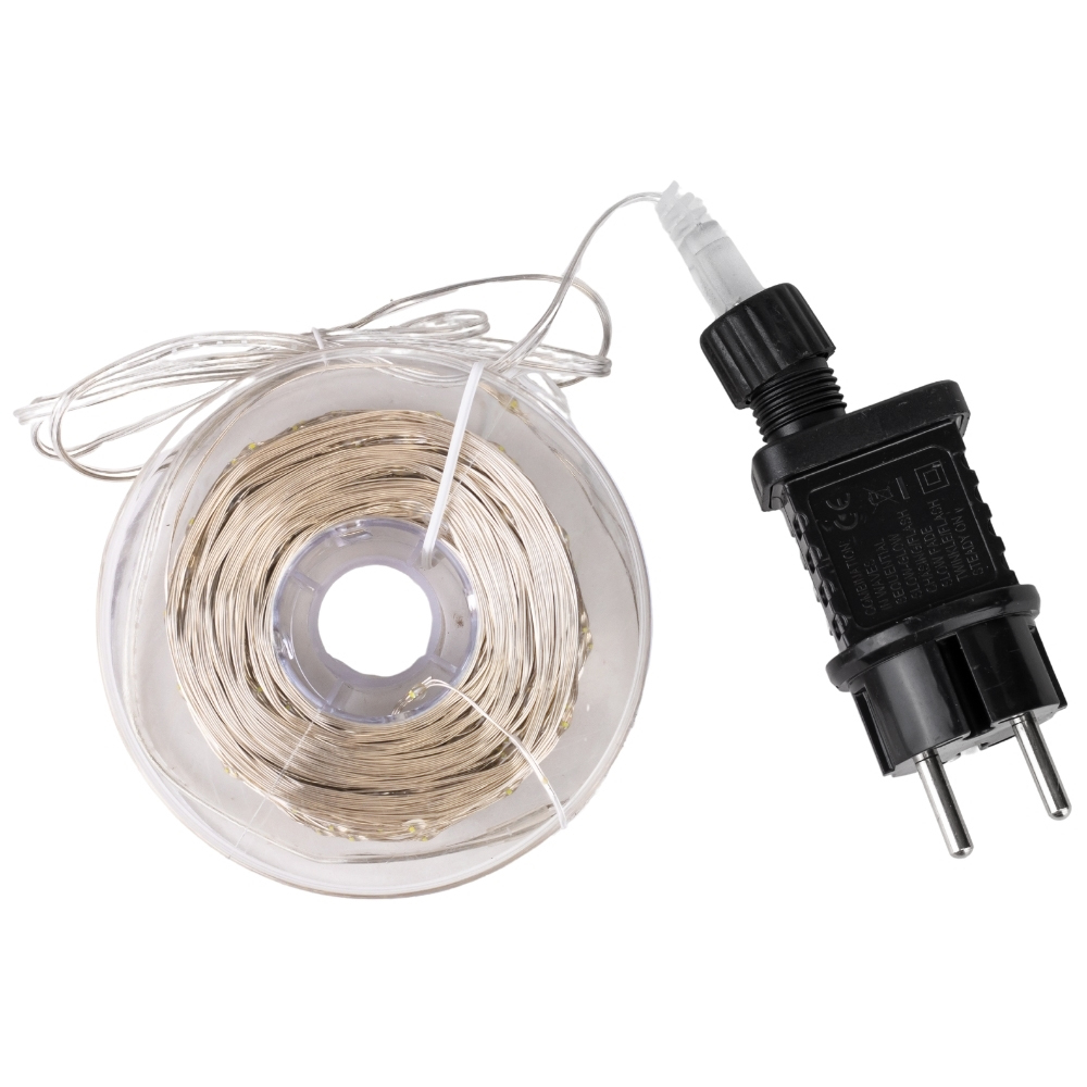 Довжина: 50 м. Кількість світлодіодів: 500 LED. Колір LED: білий. Тип живлення: електромережа. Живлення: 220 V. Кількисть режимів: 6. Слаботочний адаптер БЕЗ кнопки управління. Автоматичне, хвилеподібне перемикання режимів освітлення. Додайте казкової атмосфери до вашого святкового асортименту з гірляндою Роса. Ця стильна гірлянда довжиною 50 метрів, оснащена білими LED-ліхтариками, створює ефект яскравих крапельок роси, що мерехтять у темряві. Легка та гнучка конструкція дозволяє з легкістю обвивати гірлянду навколо будь-яких предметів – від ялинки до меблів або декоративних композицій. Гірлянда Роса ідеально підходить для внутрішнього використання, додаючи яскравих кольорів і святкового настрою у будь-який куточок. Енергоощадні LED-лампочки забезпечують довговічність та безпеку, дозволяючи насолоджуватися казковим сяйвом протягом усього сезону.