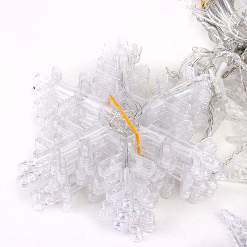 Тип живлення: електромережа. Додайте зимової магії до вашого святкового декору з гірляндою Сніжинки. Ця ніжна гірлянда довжиною 3 метри оснащена LED-ліхтариками у формі витончених білих сніжинок. Кожна сніжинка світиться різнокольоровим світлом, створюючи відчуття зимового чуда та затишку. Гірлянда Сніжинки підходить для прикрашання ялинки, вікон, стін чи інших елементів інтер’єру, додаючи святкову атмосферу у будь-який куточок вашого дому. Завдяки енергоощадним LED-лампочкам, вона безпечна у використанні та забезпечує тривале сяйво протягом всього святкового періоду.