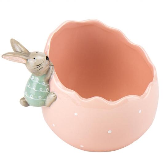 Великоднього кролика можна використовувати не тільки як тематичний декор, але і кожного дня, ставлячи його у відповідне місце – на кухні, у вітальні або дитячій кімнаті. Звичайно, цей горщик є відмінним варіантом для подарунка. Він виготовлений з високоякісної кераміки рожевого кольору з милим білим кроликом, який подбає про ваші квіти.
