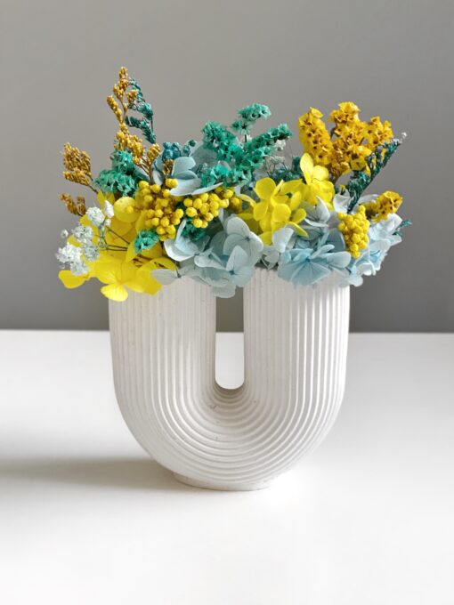 Кожна квітка у цій композиції вибрана з особливою увагою до деталей, щоб передати красу української природи. Стильний та елегантний дизайн флораріуму гармонійно впишеться в будь-який інтер’єр, додаючи нотку витонченості та патріотизму.
