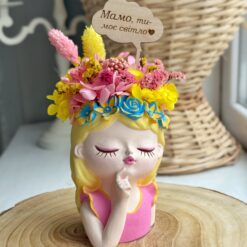 У нас завжди великий асортимент кашпо з букетами зі стабілізованих рослин у наявності.