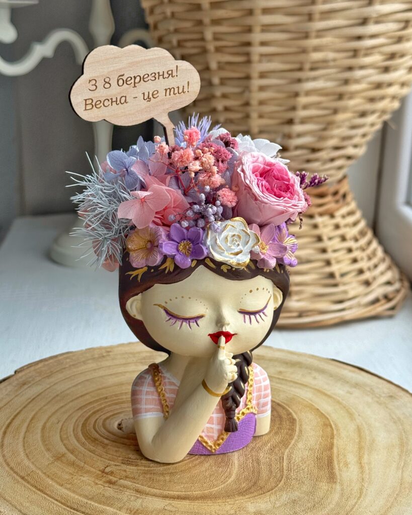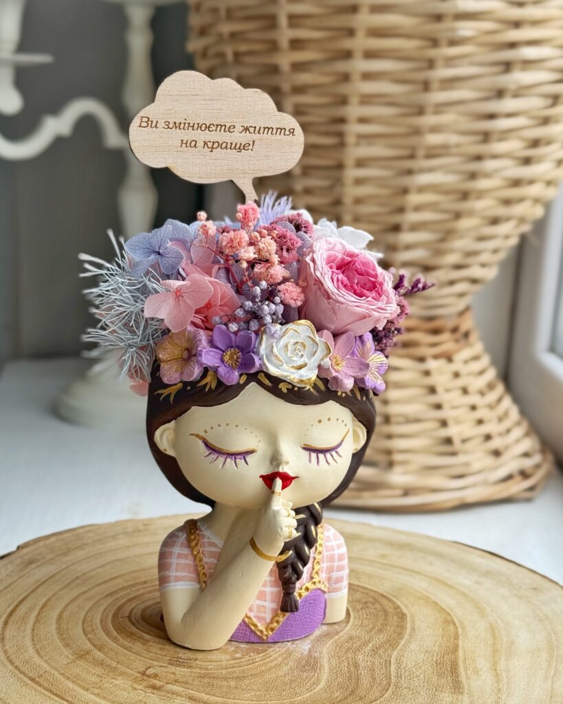 У нас завжди великий асортимент кашпо з букетами зі стабілізованих рослин у наявності.