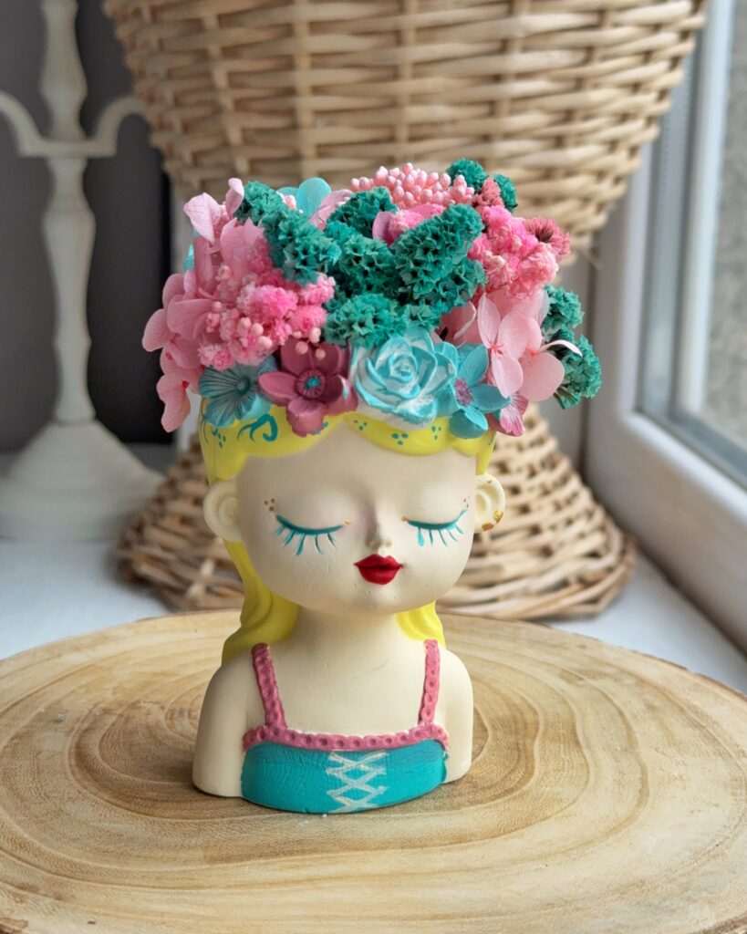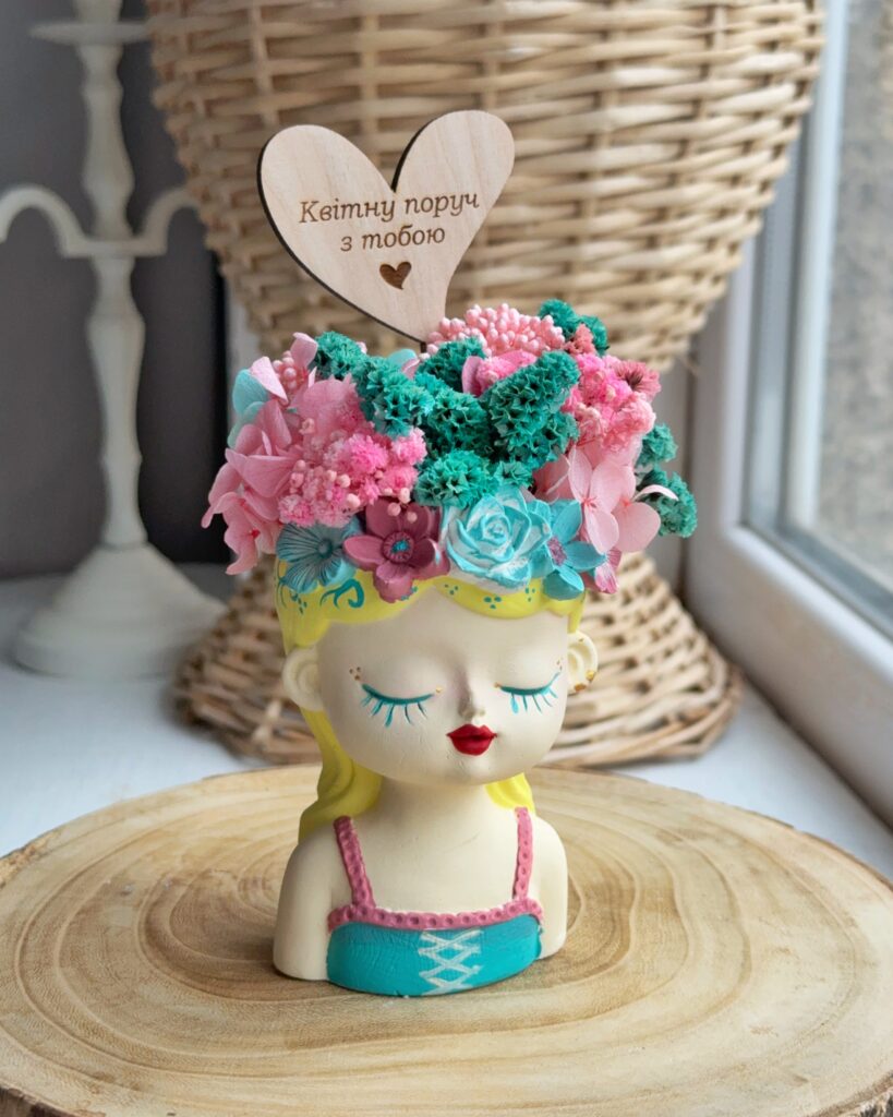Кашпо Дівчина з букетом в асортименті та подарунковим пакетом