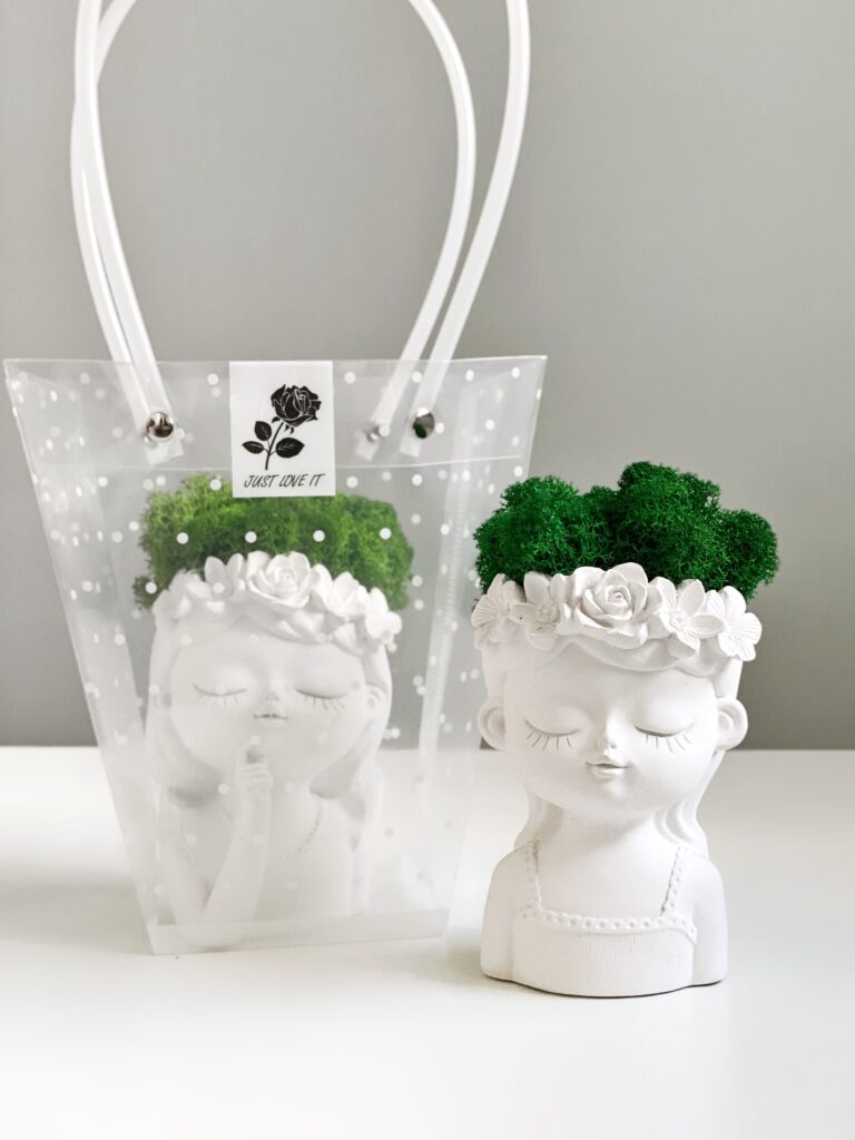 Кашпо Дівчина з віночком з мохом в асортименті та подарунковим пакетом