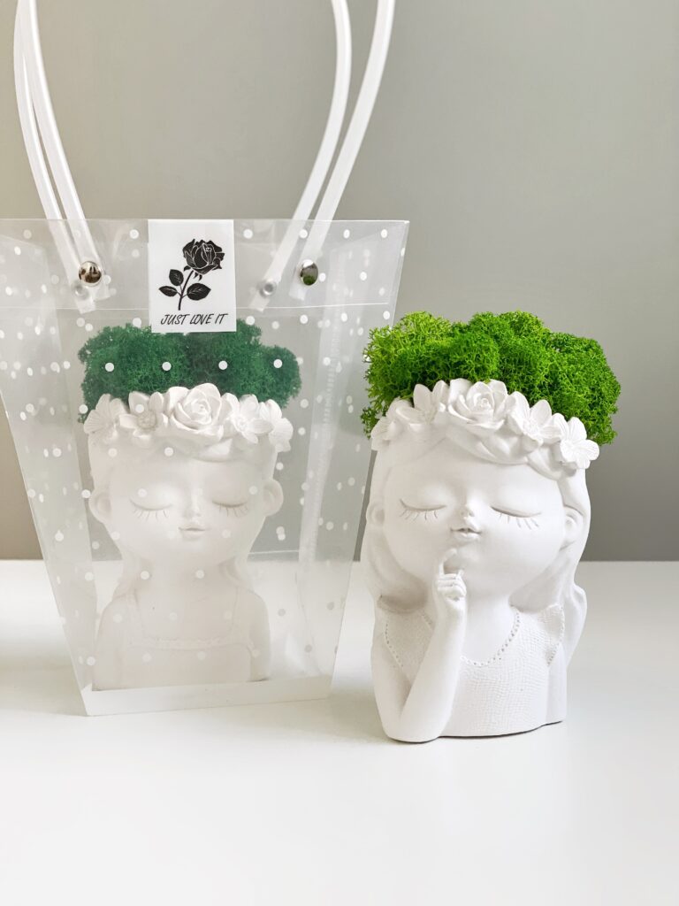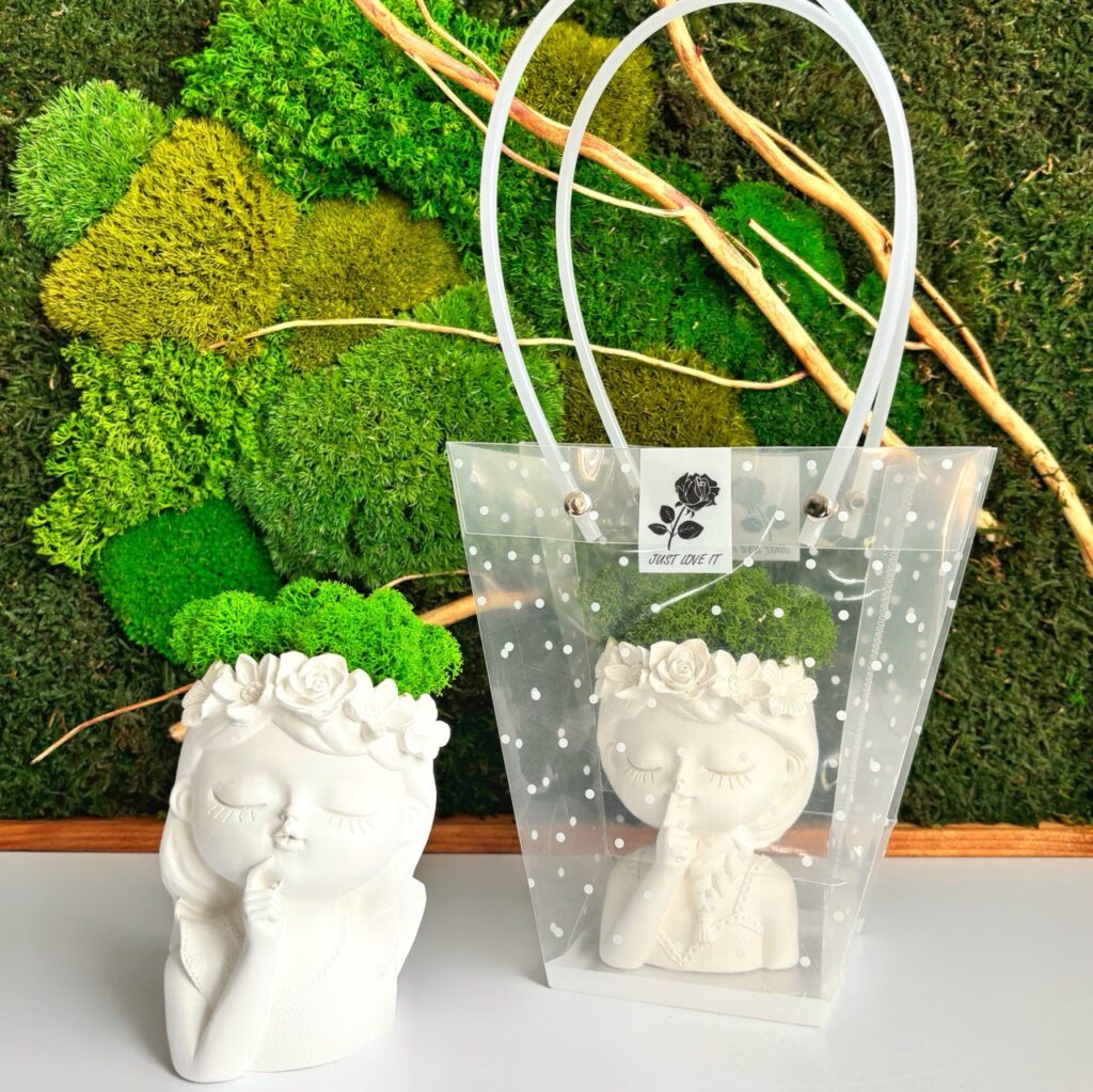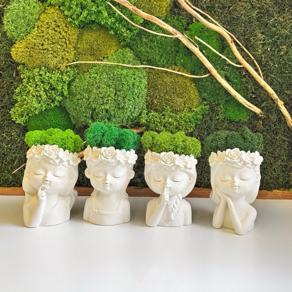 Чарівне декоративне кашпо у формі дівчинки з мохом стане стильним акцентом у будь-якому інтер’єрі.