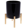 Кашпо керамічне Флора на бамбуковій підставці 37см, колір – чорний глянець