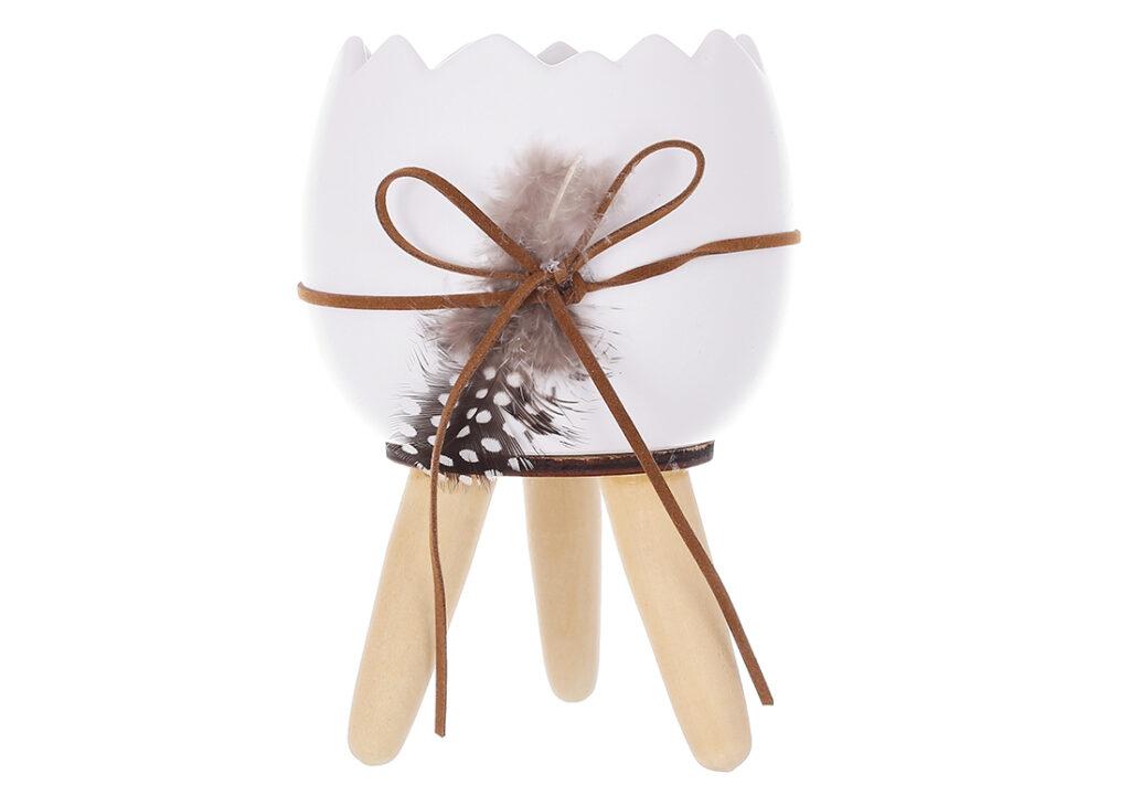 Кашпо керамічне на дерев’яних ніжках,14.5 см, колір – білий матовий 834-880