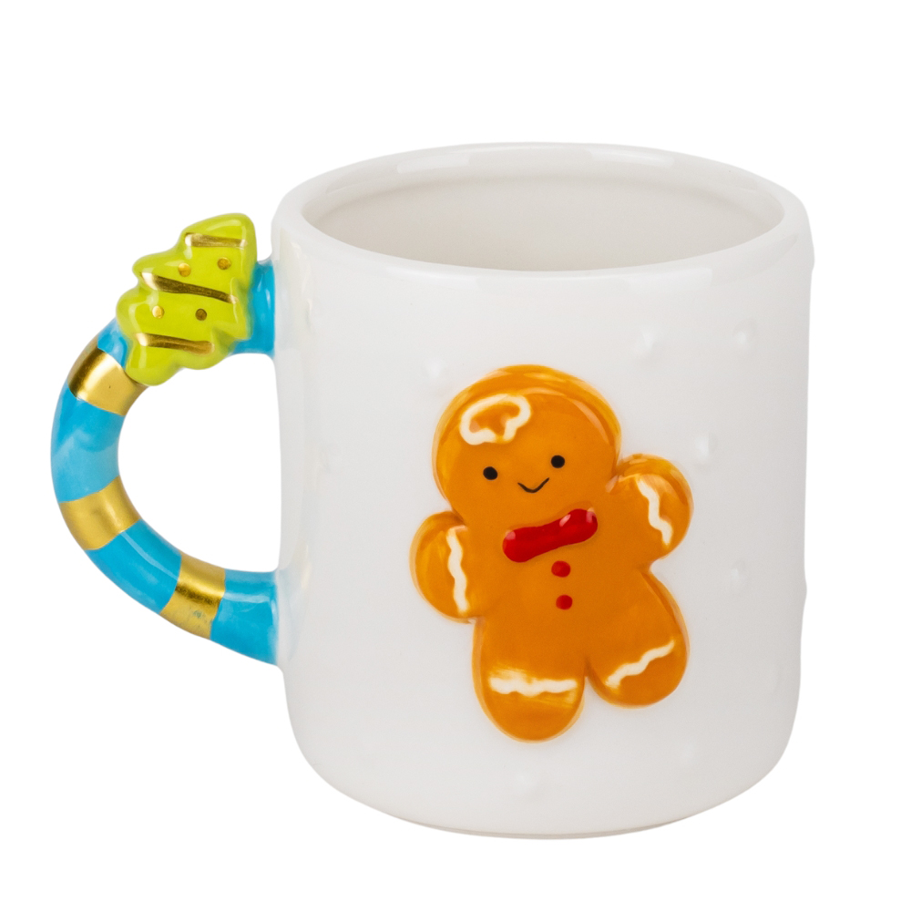 Об’єм кружки – 300 мл. Діаметр – 8,5 см, висота – 10 см, довжина з ручкою – 11,5 см. Ця новорічна біла кружка із кольоровою ручкою прикрашена милим малюнком імбирного печива, що додає особливого святкового настрою. На білому тлі кружки зображене печиво з веселою усмішкою, який виглядає привітно і дружелюбно. Малюнок виконаний у яскравих кольорах, що створює гарний контраст з білим фоном. Кольорова ручка додає кружці святкового акценту, гармонійно поєднуючись із зображенням сніговика. Кераміка забезпечує комфорт і зберігає тепло напою, що робить її чудовим вибором для зимових напоїв, таких як гарячий шоколад, какао чи ароматний чай. Ця кружка стане ідеальним доповненням до новорічних традицій, додаючи веселу і теплу атмосферу.