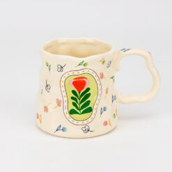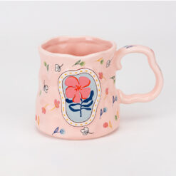 Об’єм — 400 мл. Ця керамічна кружка зачаровує своєю оригінальною, злегка вигнутою формою та автентичним дизайном. Її поверхня прикрашена ніжним розсипом дрібних квітів, а в центрі розташована виразна ілюстрація в рамці, що надає виробу особливого художнього шарму. Краї чашки мають м’які хвилясті обриси, що ідеально гармоніюють із вигнутою масивною ручкою, розробленою для максимально комфортного тримання. Завдяки своєму витонченому та сучасному вигляду, вона стане ідеальним доповненням до затишних домашніх вечорів або приємним подарунком, що передає тепло та турботу.