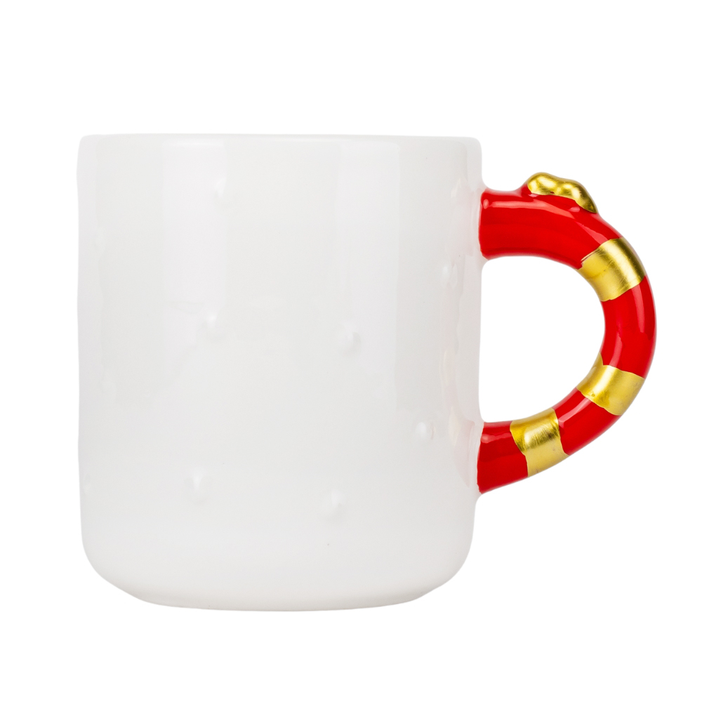 Об’єм кружки – 300 мл. Діаметр – 8,5 см, висота – 10 см, довжина з ручкою – 11,5 см. Ця новорічна біла кружка має святковий дизайн, доповнений яскравою кольоровою ручкою та чарівним малюнком льодяника. Малюнок льодяника з червоно-білими смужками нагадує класичні різдвяні солодощі, додаючи кружці святкового настрою. Ручка кружки пофарбована в яскраві кольори, що гармонійно поєднується з малюнком, створюючи святковий контраст на білому тлі. Кераміка забезпечує приємне відчуття при триманні, а білий фон підкреслює чистоту і витонченість дизайну. Ця кружка стане чудовим вибором для гарячого шоколаду, какао або чаю, додаючи святкової нотки в кожен напій.