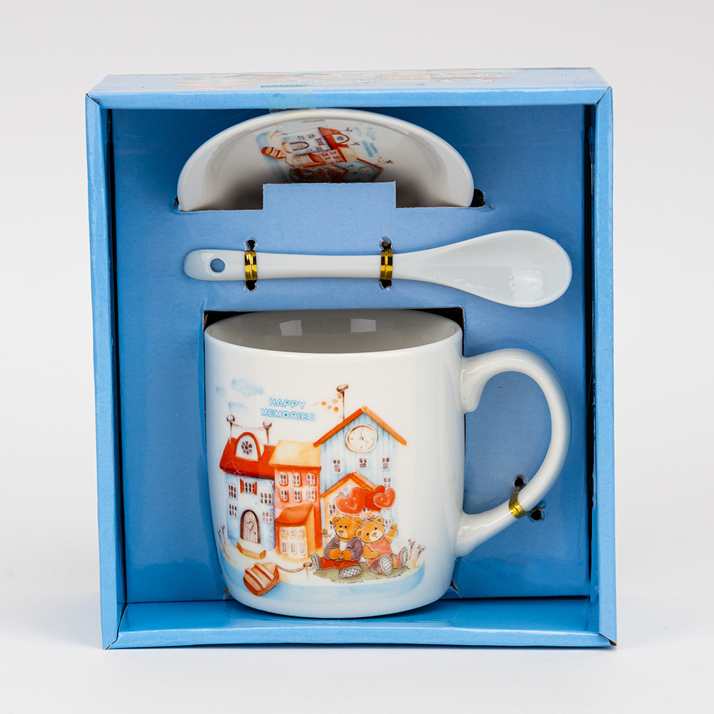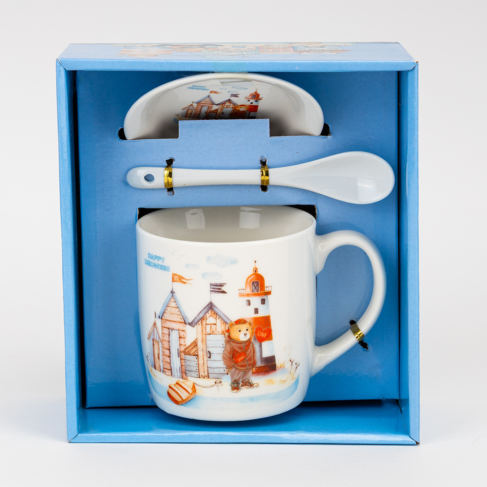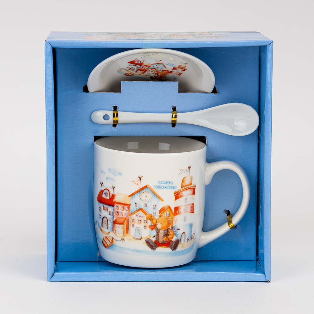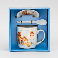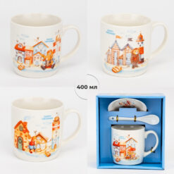 Об’єм — 400 мл. Цей подарунковий набір включає керамічну чашку, блюдце та ложку, оформлені в єдиному стилі. Виріб постачається у презентабельній подарунковій упаковці, що робить його готовим рішенням для роздрібної торгівлі та корпоративних привітань. Модель ідеально підходить для оптових замовлень завдяки високій популярності тематичного дизайну, практичності у використанні та привабливому вигляду на вітрині.