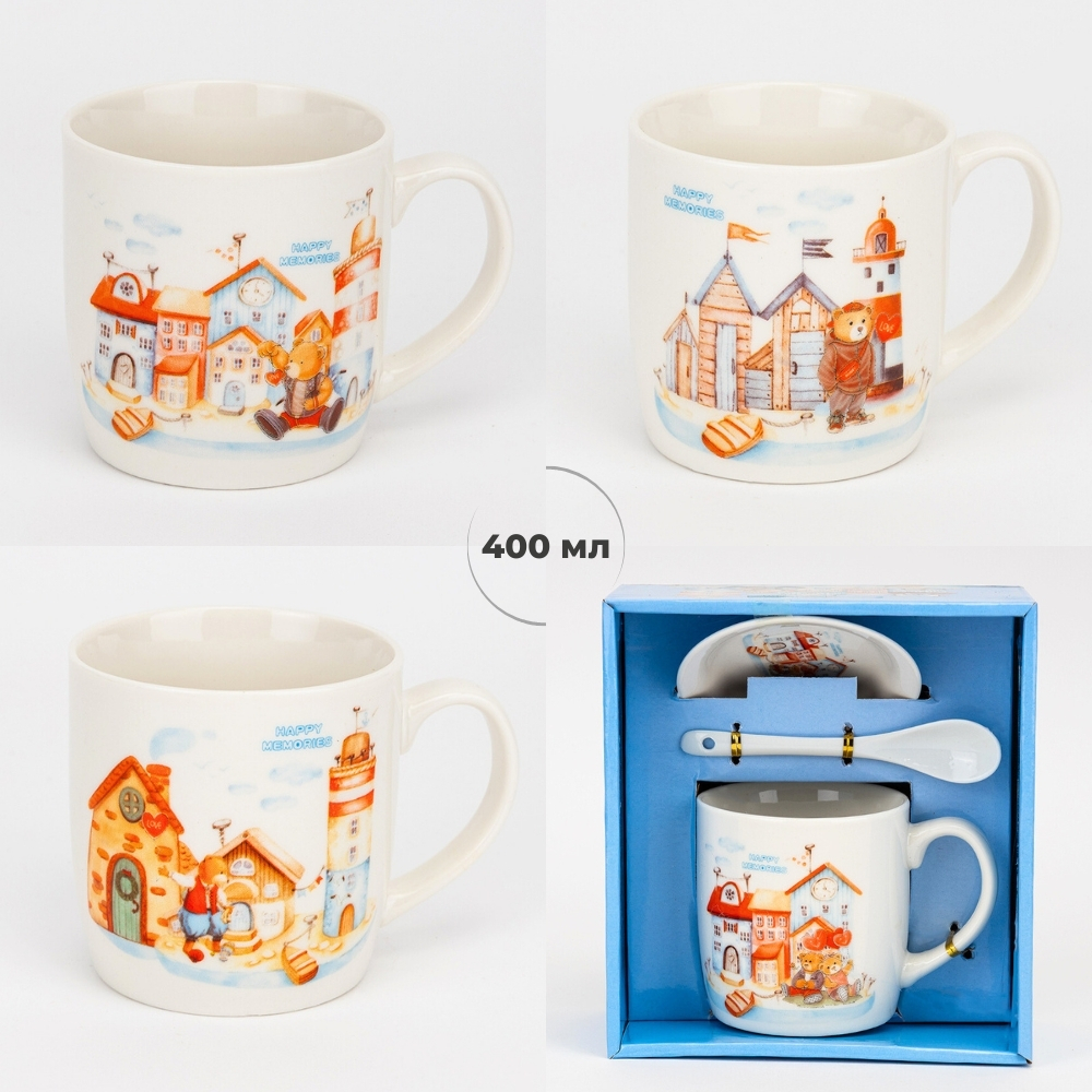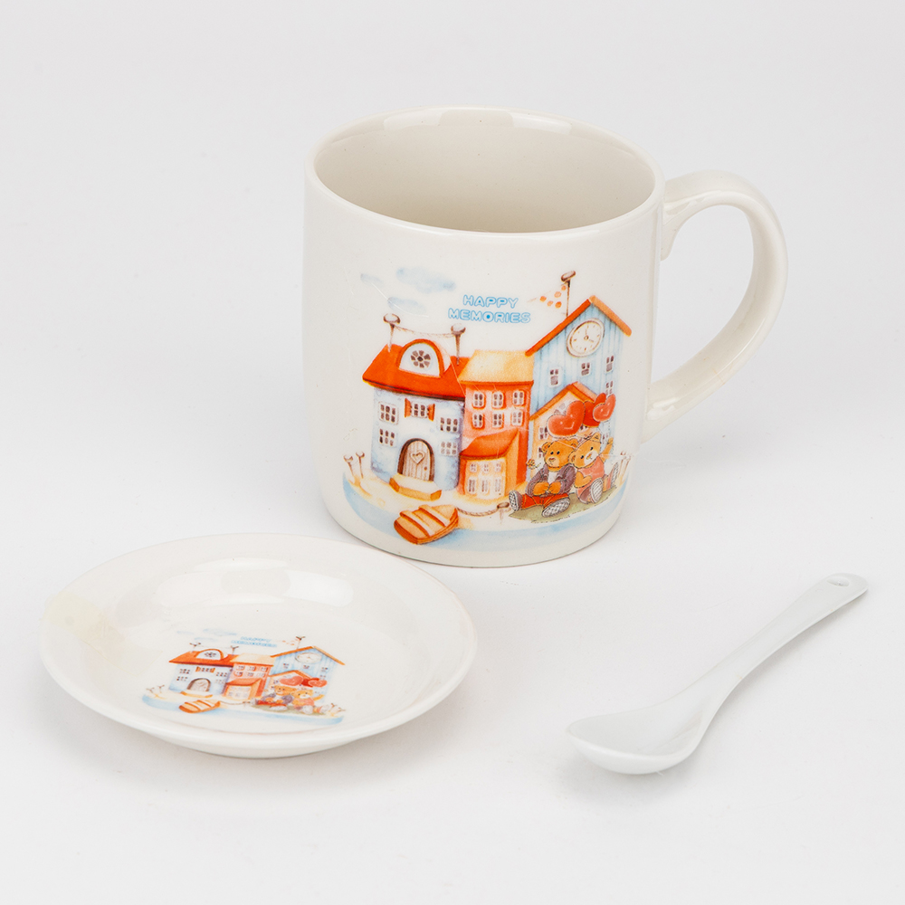 Кружка з блюдцем та ложечкою Happy memories, 400 мл * Рандомний вибір дизайну