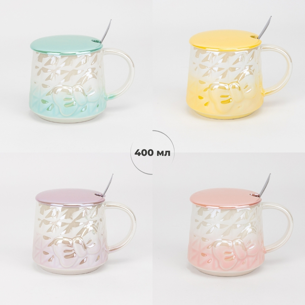 Кружка з кришкою та ложечкою Бантик, 400 мл * Рандомний вибір дизайну