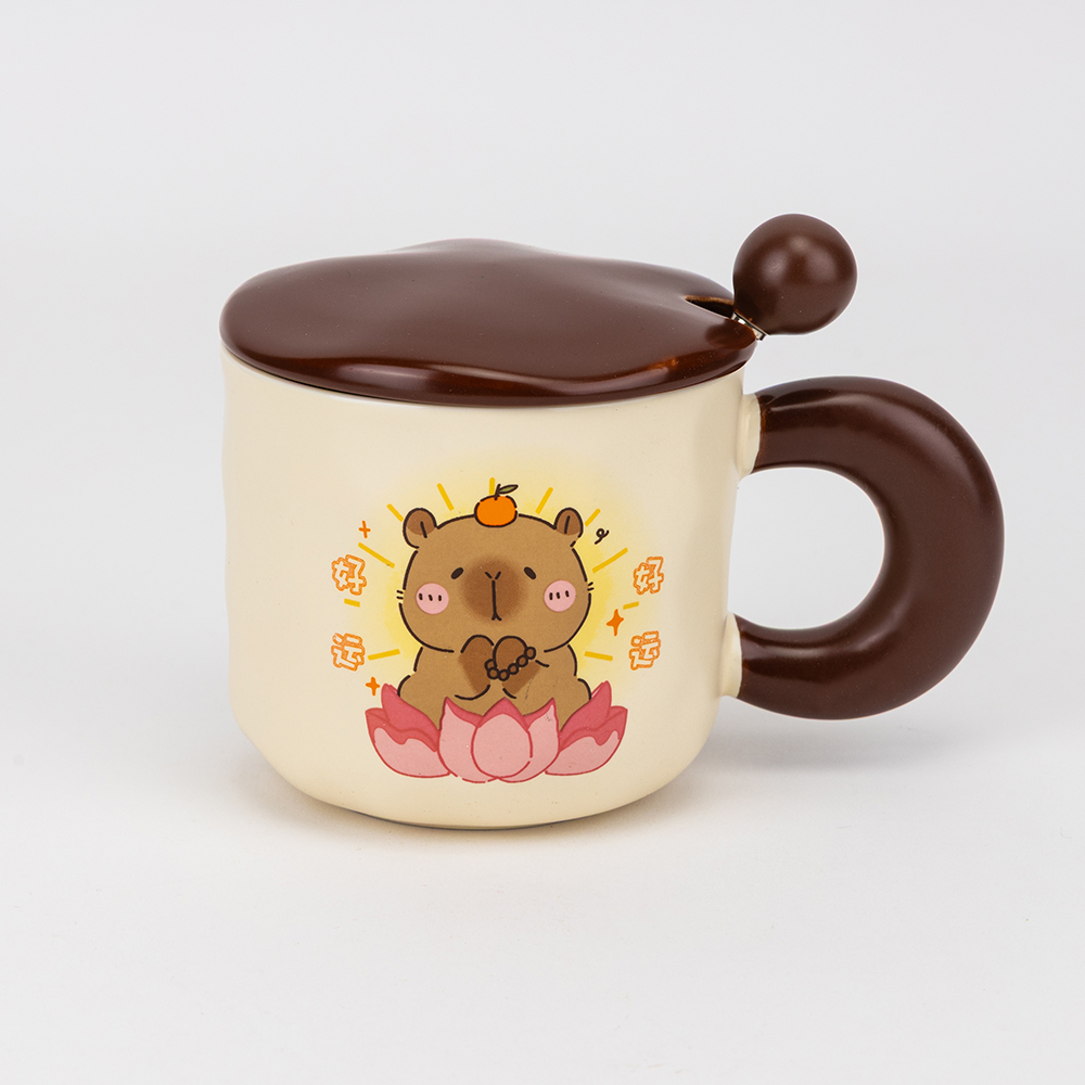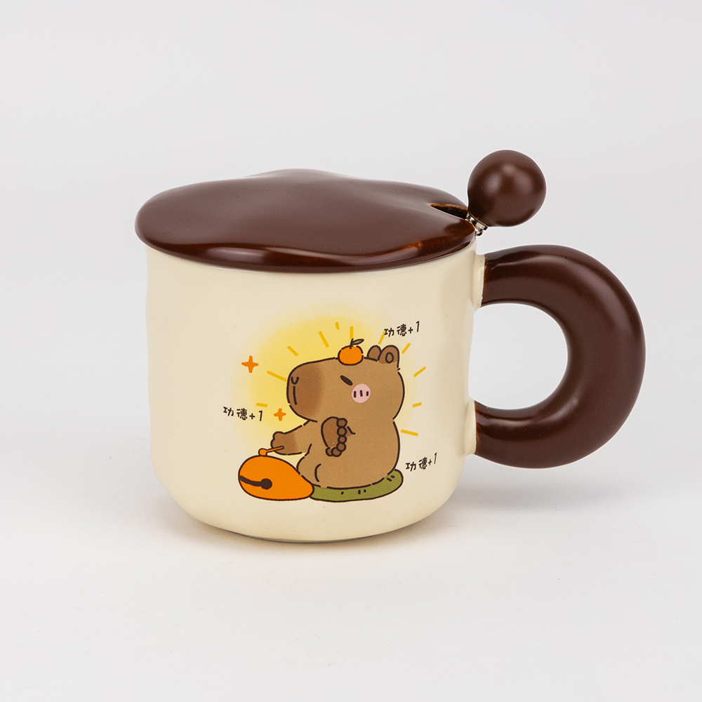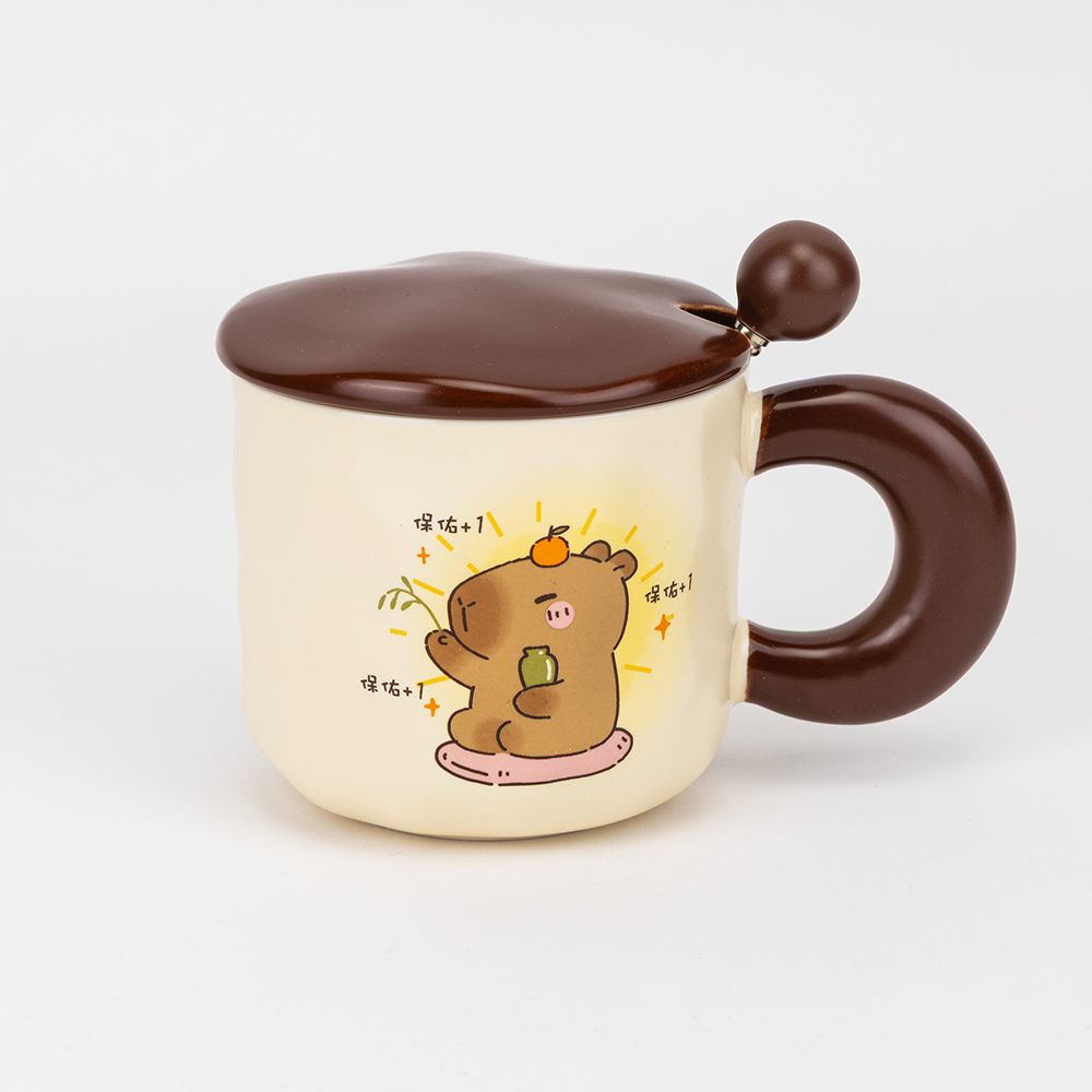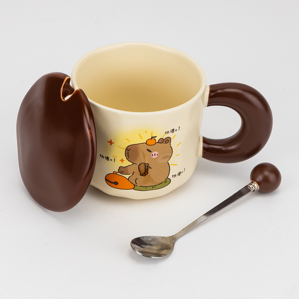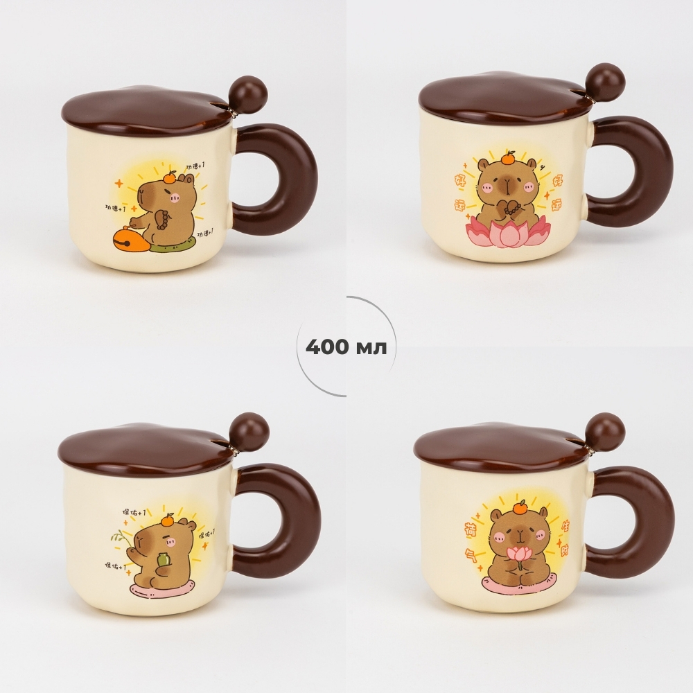 Кружка з кришкою та ложечкою Капібара, 400 мл * Рандомний вибір дизайну