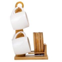 Об’єм кружок – 170 мл. Висота набору – 25 см, ширина – 14,5 см. Висота чашок – 6 см, діаметр – 8 см. Довжина підставок під кружки – 13 см. Набір запакований в розібраному вигляді у подарункову коробку. Набір керамічних кружок на бамбуковій підставці є чудовим поєднанням естетики, функціональності та природної привабливості. Кружки виготовлені з високоякісної кераміки, що надає їм міцність та довговічність. Підставка, на якій розміщені кружки, виготовлена з бамбуку. Бамбукові круглі підставки під кружки знімні, що дозволяє стабільно тримати їх на місці та берегти поверхні від подряпин та гарячого. Комбінація білих кружок із бамбуковою підставкою створює затишну і гармонійну атмосферу.