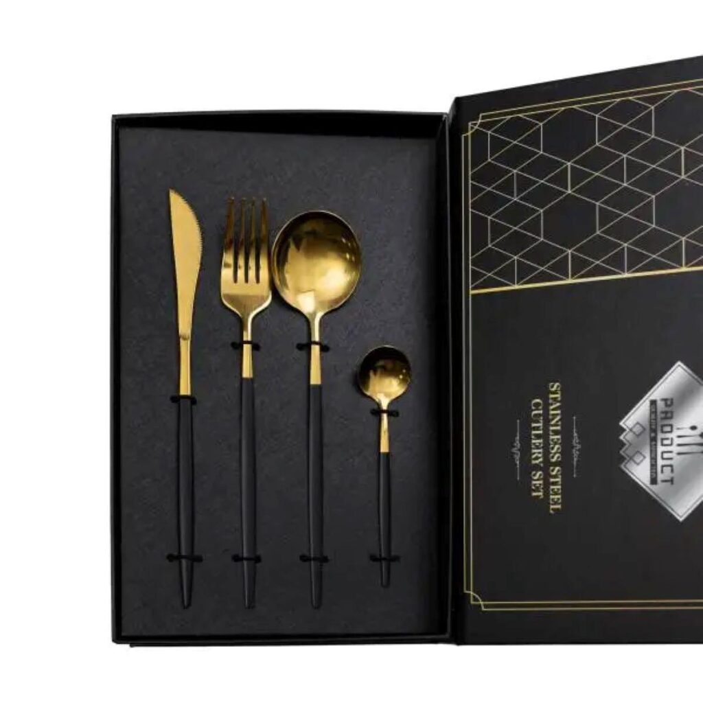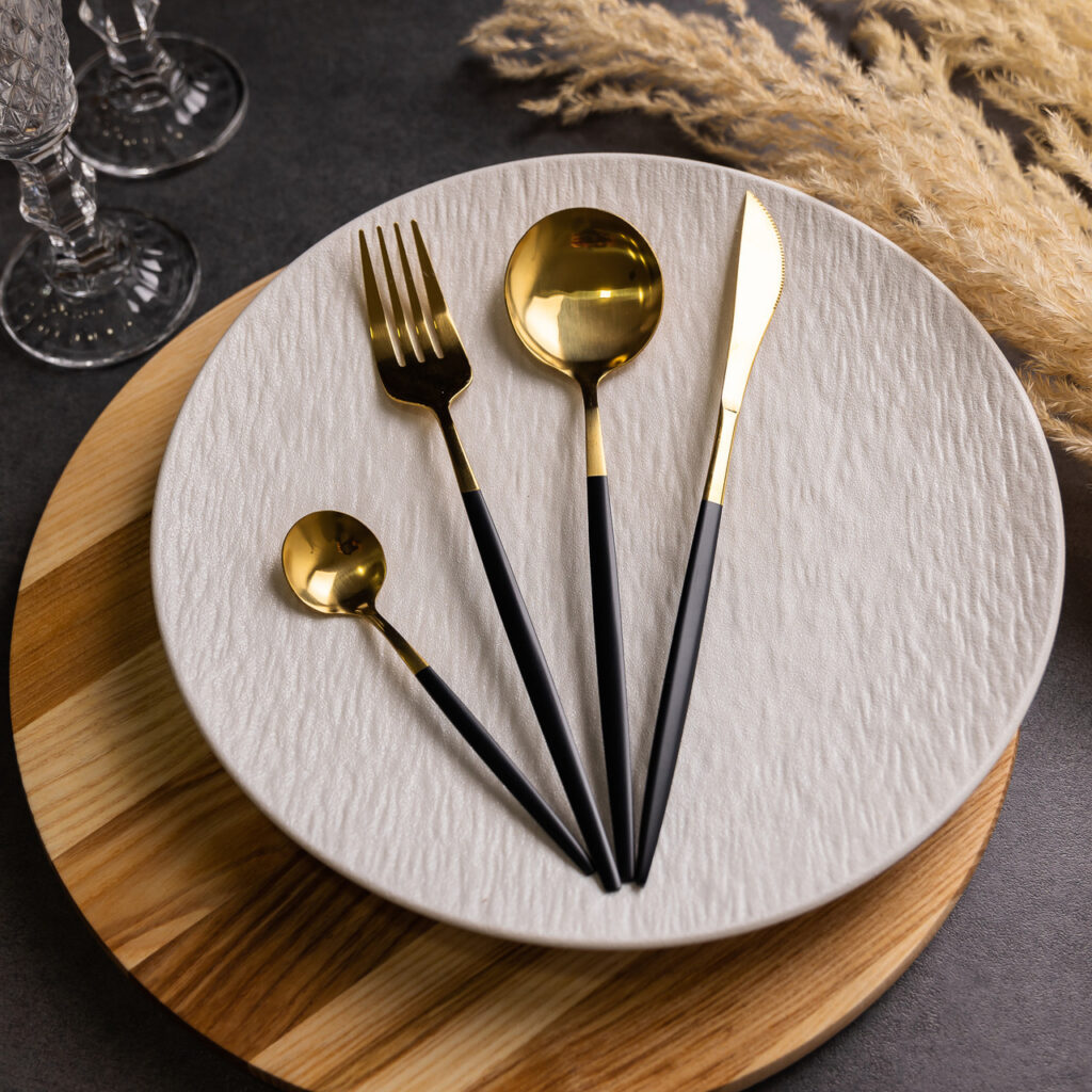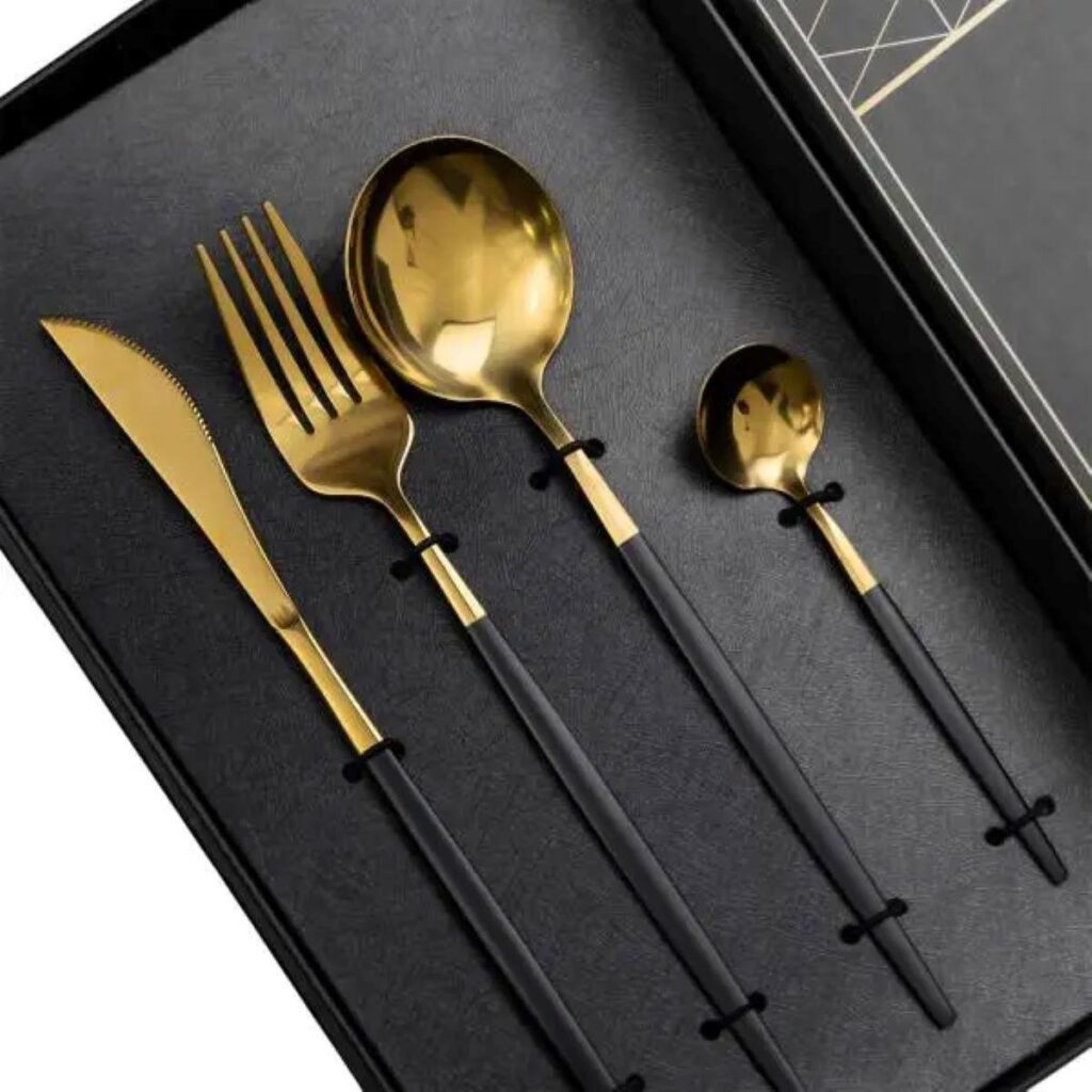 Be the first to review “Набір столових приборів 24 предмети столовий набір на 6 персон Золотистий з чорним HP-20-46” Скасувати коментар