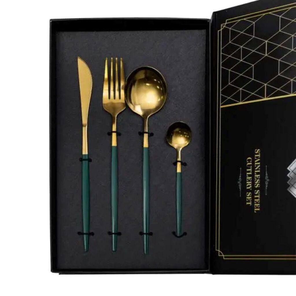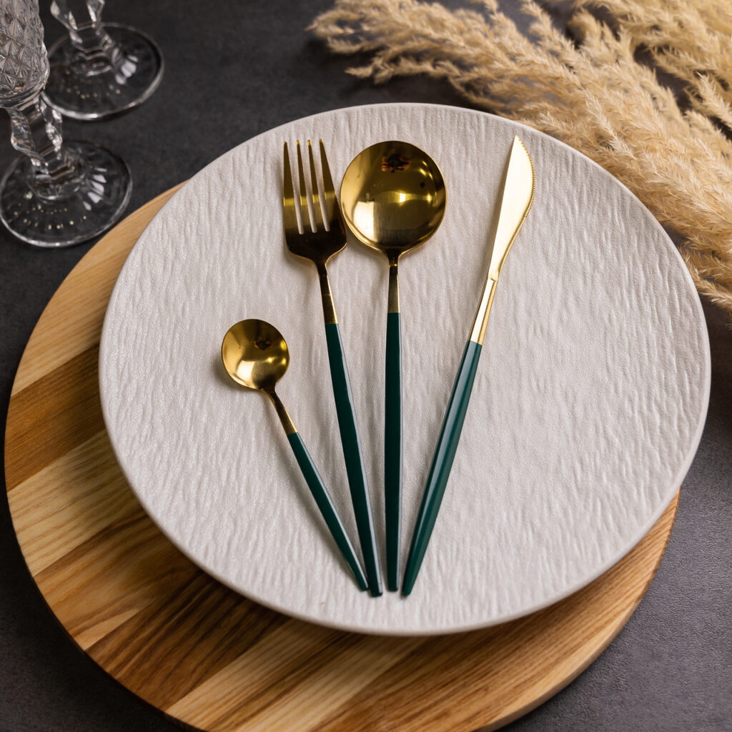 Набір столових приборів 24 предмети столовий набір на 6 персон Золотистий з зеленим HP-20-48
