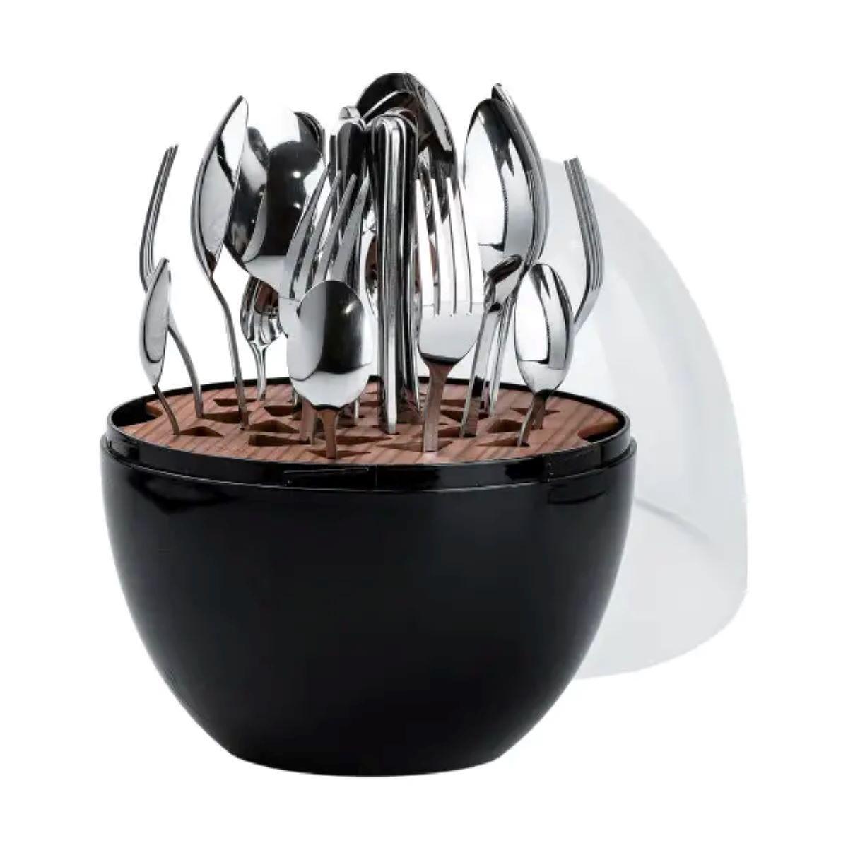 Набір столових приладів на 6 персон із нержавіючої сталі 24 штуки з підставкою Яйце Чорний HP78811