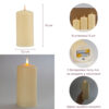 Електричні свічки, працюють від 2 батарейок типу АА, не входять у комплект. Висота – 15 см * 12,5 см * 10 см, діаметр – 7,2 см. Свічки виготовлені з міцного пластику та мають вбудовану LED-лампочку, що імітує мерехтіння живого полум’я. Вони поєднують естетику класичних свічок із сучасною безпекою та зручністю. Ідеально підходять для використання декораторами, а також у готелях, ресторанах і на урочистостях. Завдяки своєму елегантному вигляду чудово доповнять інтер’єри в стилях мінімалізм, ретро, скандинавський чи романтичний.