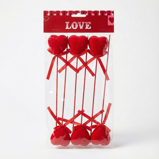 Набір з 6 флокових сердець на паличці, 22 см (2021-003)