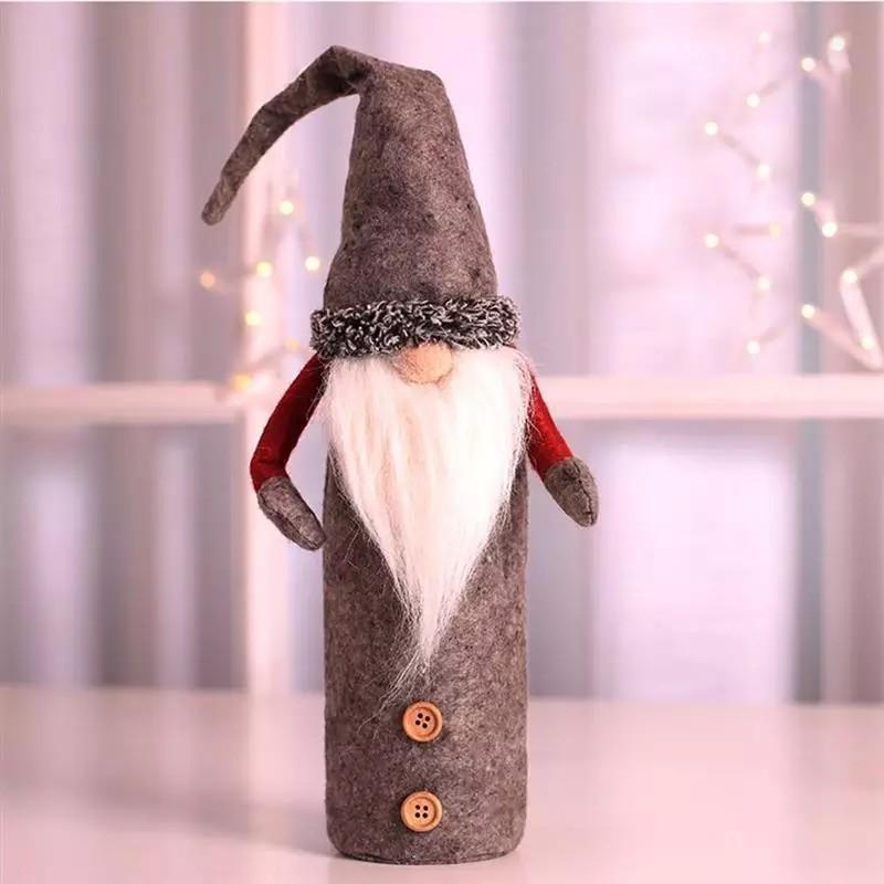 Новорічний декор на пляшку у вигляді милого гнома прикрасить ваш святковий стіл, а також приємно здивує гостей чи господарів, якщо гість – це ви.