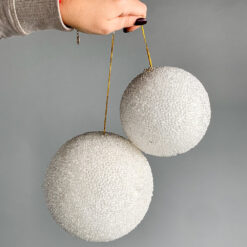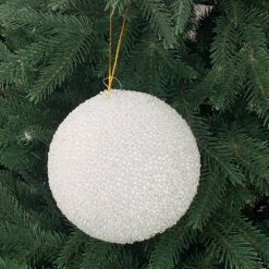 Новорічна іграшка на ялинку Засніжена кулька особливо відрізняється лаконічністю і простотою. Легка вага ялинкової кулі дозволяє прикрасити будь-яку гілку, навіть саму тоненьку.