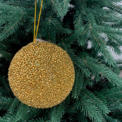 Новорічна іграшка на ялинку Золотиста кулька особливо відрізняється лаконічністю і простотою. Легка вага ялинкової кулі дозволяє прикрасити будь-яку гілку, навіть саму тоненьку.