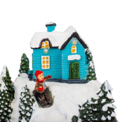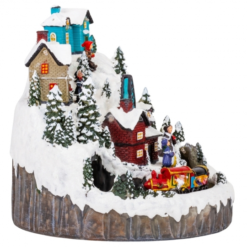 На ньому розміщені мініатюрні будинки, люди та багато зимових деталей. Карусель обертається, іграшкові фігурки на ній активно рухаються, створюючи рухливі магічні відчуття.
