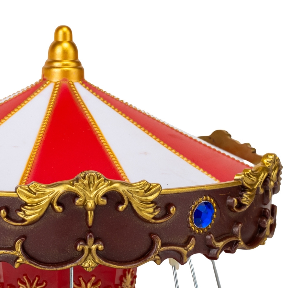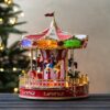 Працює від 3 АА батарейок. Висота – 16 см, діаметр – 20 см. Новорічна карусель – це справжнє втілення святкової магії, яке зачаровує з першого погляду. Кольорові світлодіоди яскраво освітлюють карусель, підкреслюючи деталі та додаючи святкової атмосфери. Елементи каруселі плавно обертаються, додаючи динамічності й життя до декору. Карусель грає класичні різдвяні мелодії, що наповнюють простір теплом і радістю свята. Ця карусель стане яскравим акцентом у новорічному інтер’єрі – її можна поставити на святковий стіл, під ялинку або на полицю. Вона привертає увагу своїм елегантним дизайном, деталями та атмосферою, яку створює. Це чудовий вибір для подарунка – кожен, хто побачить таку карусель, відчує теплоту та магію свята.