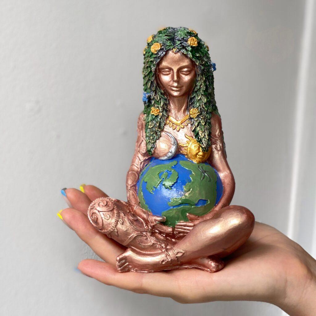 Ніжна підтримка на шляху до материнства. Мініатюрна Гайя — архeтип Матері Землі — створена, щоби нагадувати: тіло знає, як народжувати, а любов і спокій починаються всередині нас. Фігурка делікатного рожево-золотого тону стане м’яким «якорем» для щоденних афірмацій, медитацій і просто теплих думок про майбутню дитину.