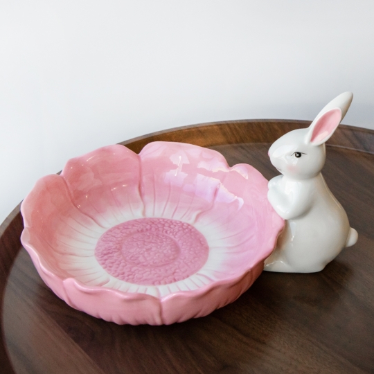 Діаметр ємності – 21,5 см, висота – 15,5 см. Піала з білим кроликом – це не тільки чарівна родзинка в тематичному великодньому декорі, але і універсальна річ в повсякденному житті. Вона порадує будь-кого у вашому домі, кафе або фотостудії! Таку ємність можна використовувати для салатів, десертів, фруктів та навіть в якості квіткового горщика. Виготовлена з кераміки.