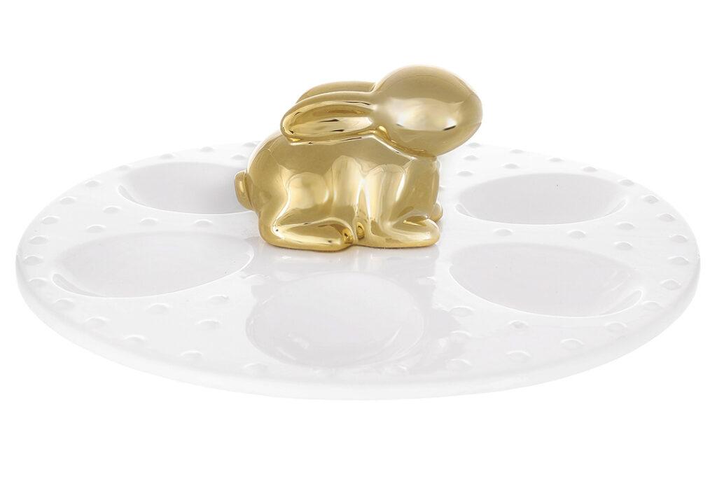 Підставка для 6ти яєць фарфорова біла із золотим кроликом D26.5*9см 727-524