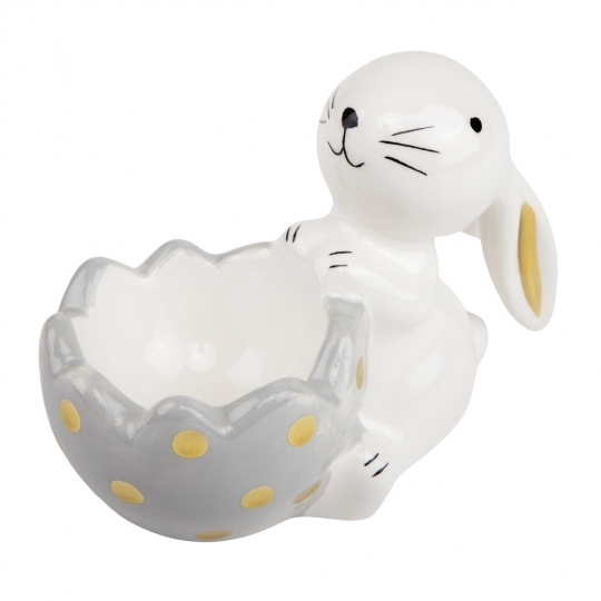 Підставка під яйце виготовлена з кераміки та має зручну форму для тримання яйця. Кролик тримає яйце у своїх лапках, що додає посуду пасхальний настрій.