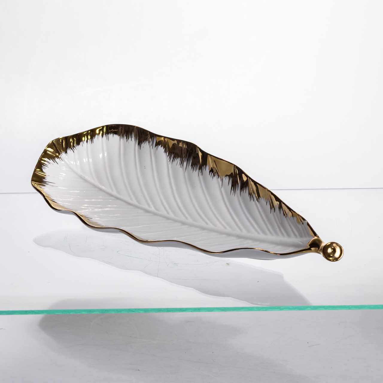 Порцелянове блюдо для сервірування столу 37×13×2.5 (см) блюдо для подавання закусок Білий із золотом CJY-145