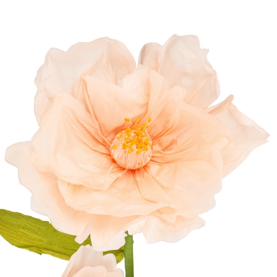 Висота – 125 см, діаметр бутона – 30 см. Розмір підставки – 19 см. Ростові декоративні квіти ідеальні для професійного декорування вітрин, фотозон та івент-майданчиків. Конструкція розроблена для багаторазового використання: стебло є стійким, а підставка виконана з міцного ПВХ, гарантуючи надійну фіксацію. Пелюстки з ніжного гофрованого паперу є гнучкими, дозволяючи швидко змінювати їх форму під час монтажу. Весь комплект доставляється у розібраному вигляді, що суттєво оптимізує логістику та значно спрощує зберігання між проєктами. Цей декор є вигідним рішенням для швидкого та ефектного оформлення просторів.