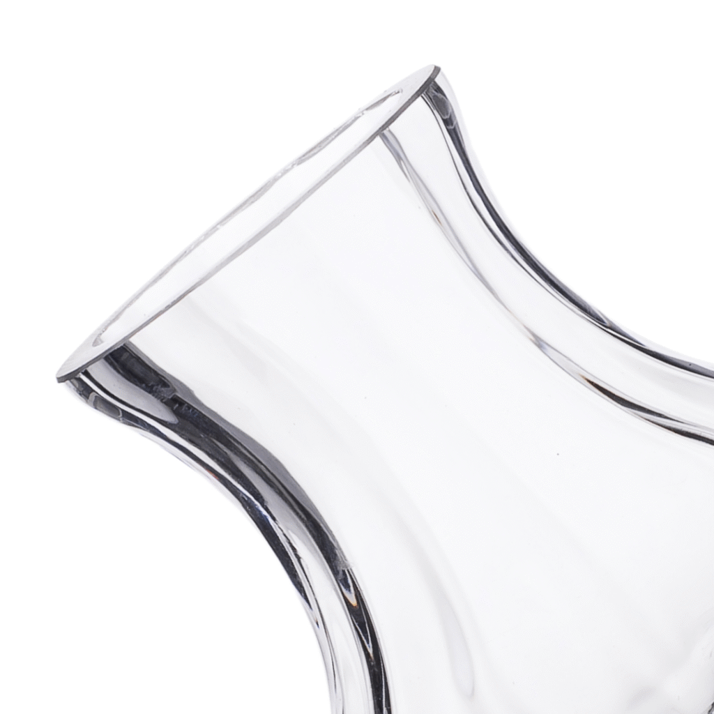 Декоративна скляна ваза фігурної форми виготовлена з прозорого скла високої якості. Її унікальна форма вирізняється плавними лініями і витонченими вигинами, що надає вазі елегантного вигляду. Висота вази становить 20.5 см, діаметр на верхньому краї – 5.5 см, що робить її придатною для різноманітних квіткових композицій або як самостійний декоративний елемент. Основні характеристики: Матеріал: скло; Об’єм: 600 мл; Діаметр: загальний – 7 см, верхній – 5.5 см, нижній – 6 см; Висота: 20.5 см; Глибина: 16.5 см. Фігурна форма дозволяє вазі стати яскравим акцентом в інтер’єрі, підкреслюючи стиль та індивідуальність приміщення. Прозоре скло дає змогу чітко бачити квіти або інші декоративні елементи, що розміщуються всередині. Для догляду за вазою рекомендується використовувати м’які мийні засоби та уникати абразивних матеріалів, щоб не пошкодити поверхню скла. Очищення вручну допоможе зберегти її в ідеальному стані на довгий час.